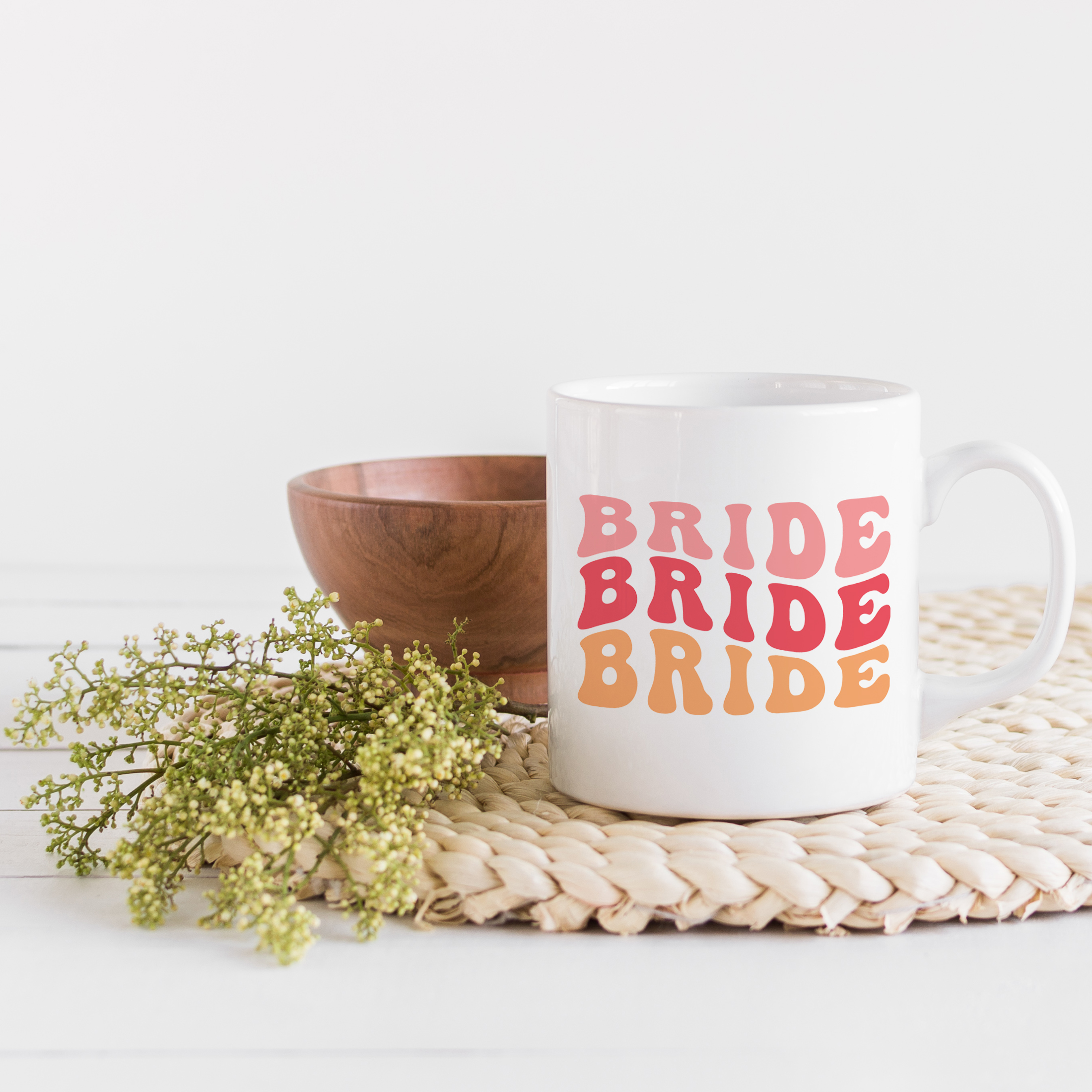Novelty Mug, Bride, Wedding, Fiancee, Bridal Shower Themed, Retro Wavy Text