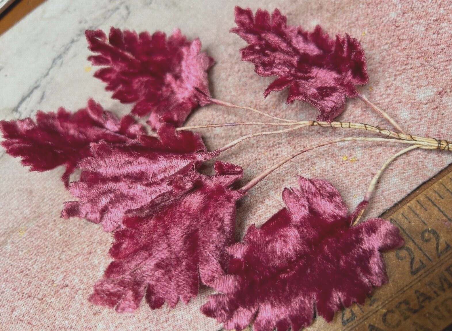как выглядит vintage millinery 1940s velvet leaves victorian rose 1 spray made in Germany фото