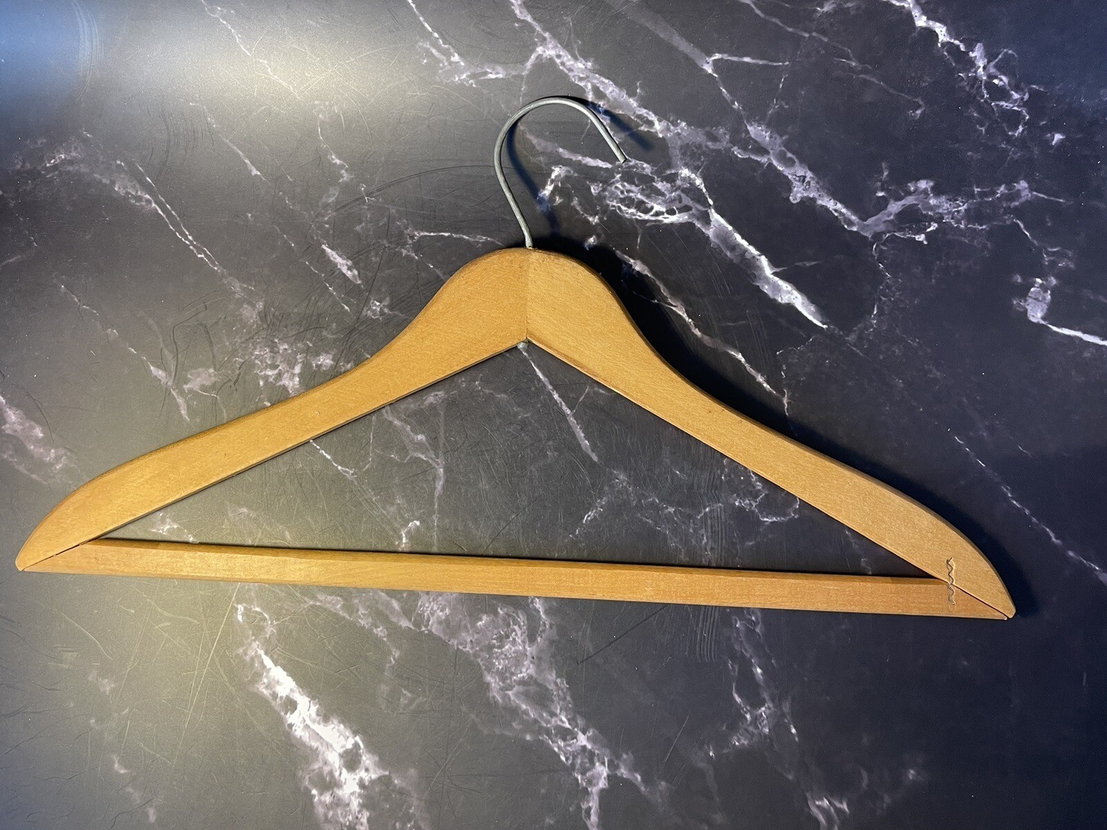 как выглядит Vintage Wood Brent Menswear Clothes Hanger Montgomery Ward фото