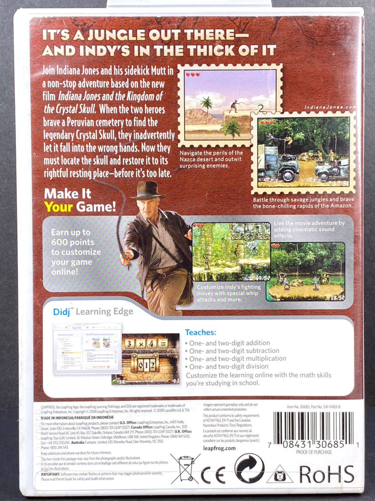 LeapFrog Didj Indiana Jones Custom Learning Game MATH AGE 7 TO 10