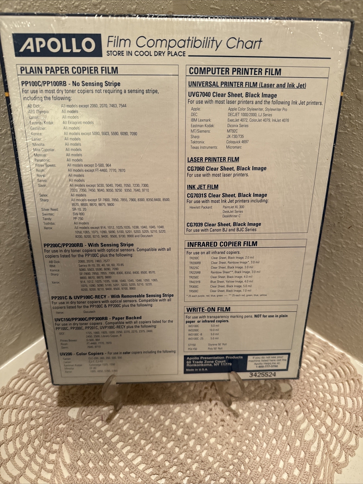 Apollo Transparency Film Plain Paper Copier Black On Clear Sheet PP100C 8.5 x 11