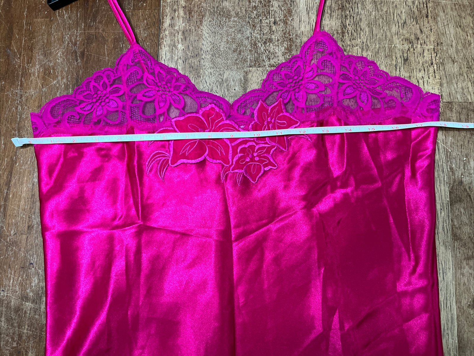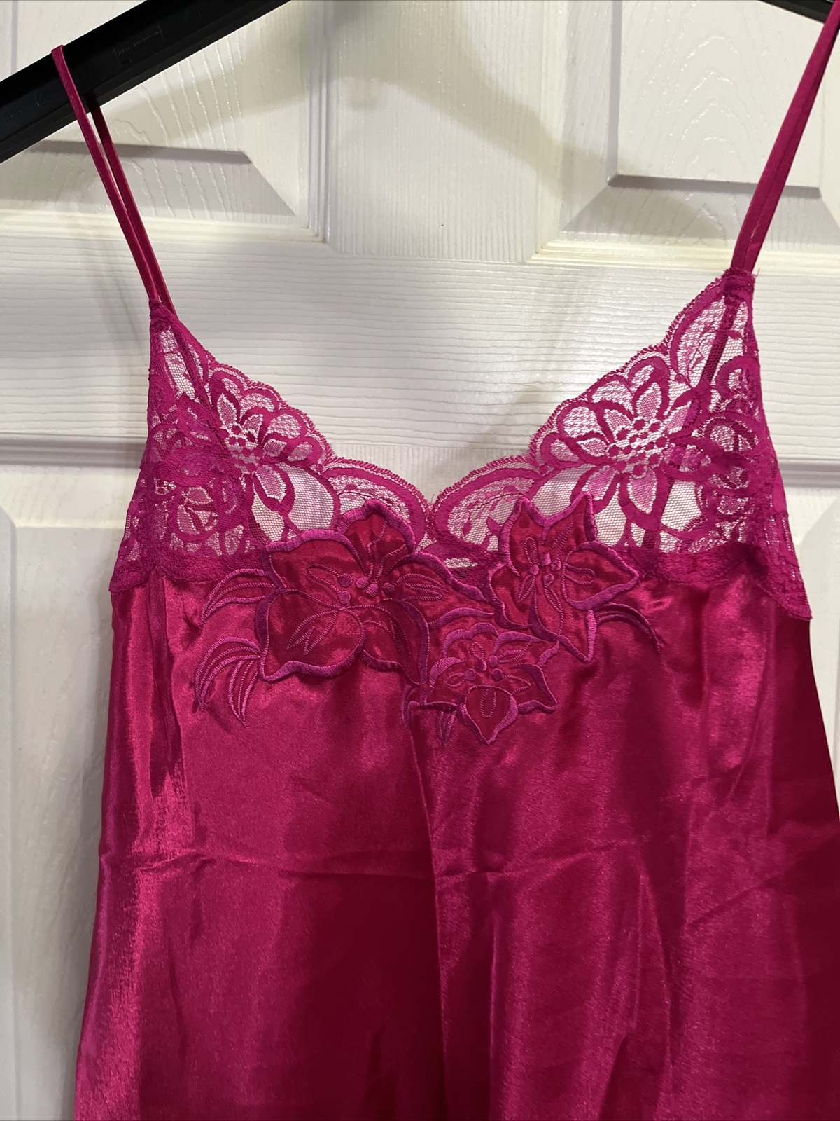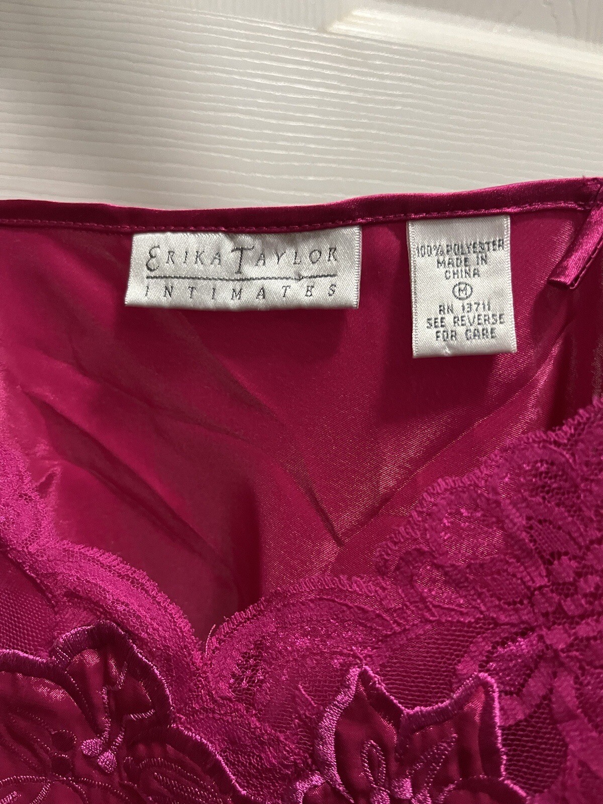 SATIN SLIP DRESS LINGERIE by ERIKA TAYLOR Intimates sz M Fuchsia Lace