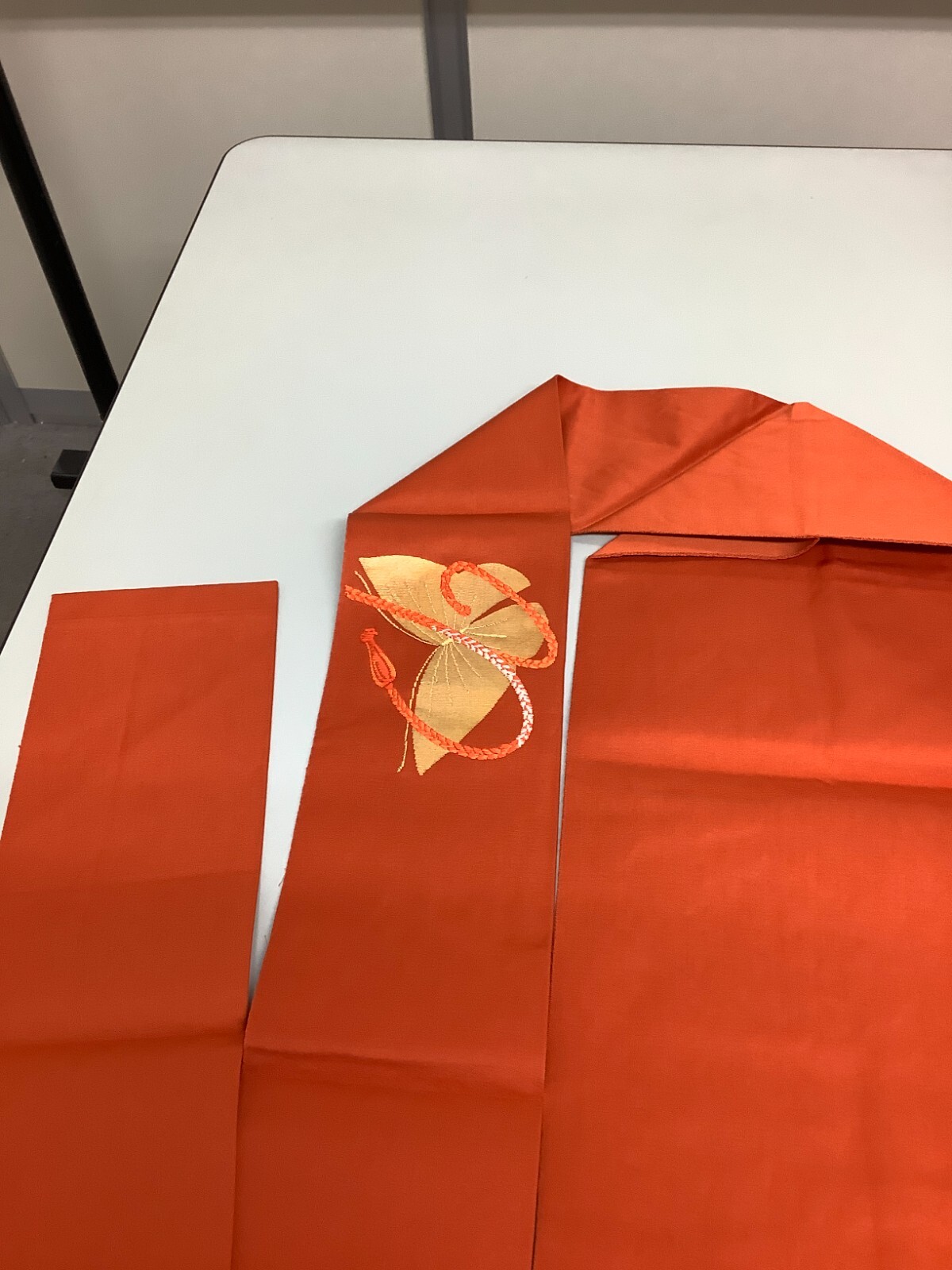 Japanese Vintage Kimono Nagoya Obi silk orange embroidery expensive 138.5x12.2in