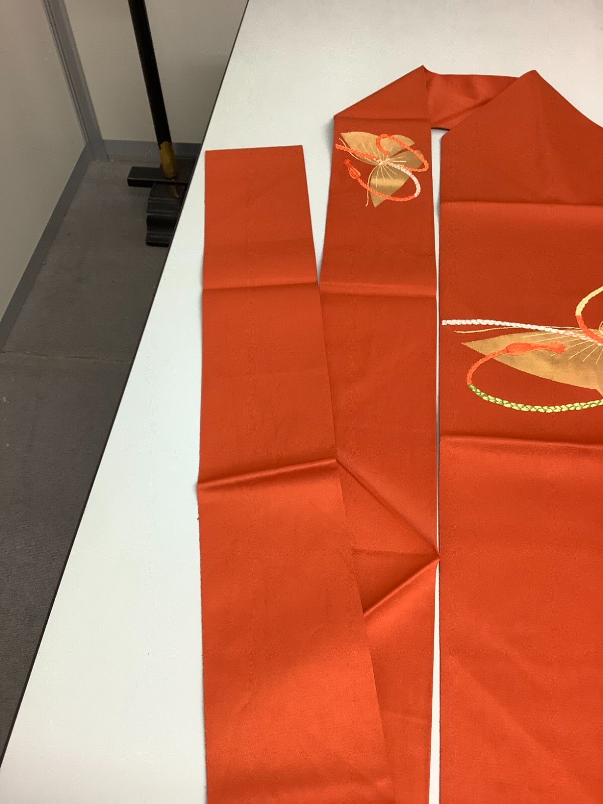 как выглядит Japanese Vintage Kimono Nagoya Obi silk orange embroidery expensive 138.5x12.2in фото