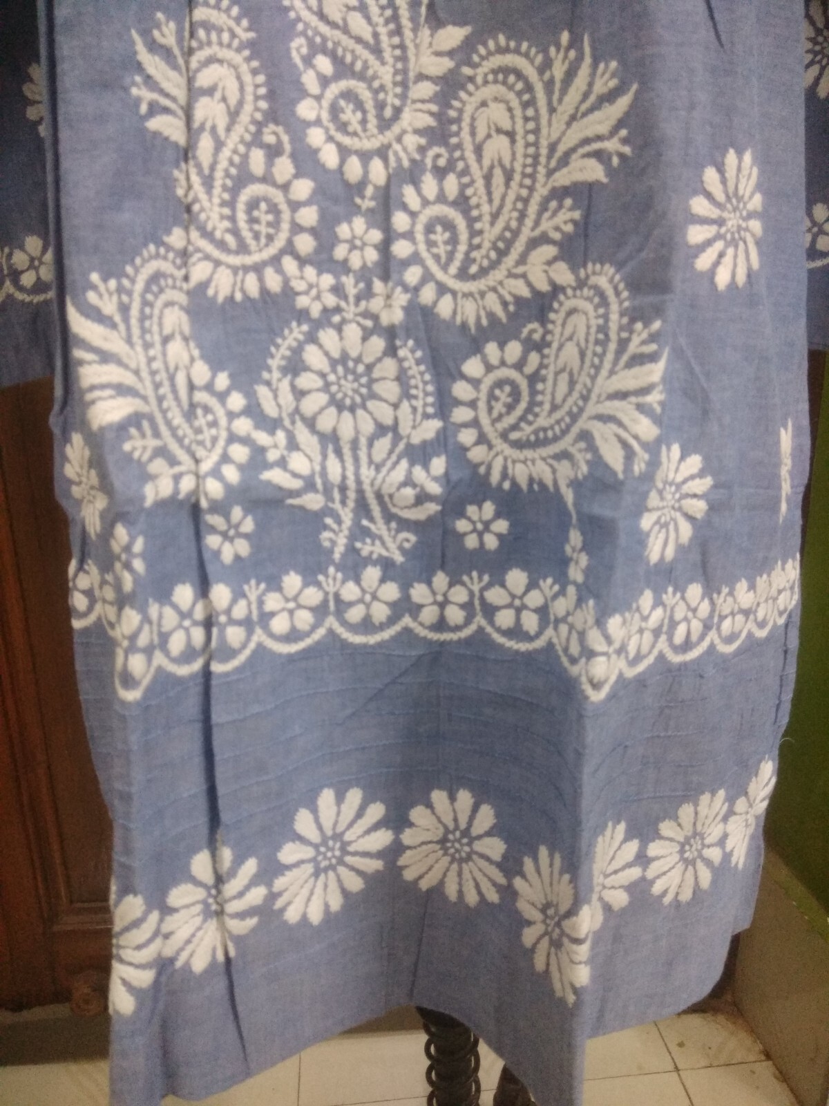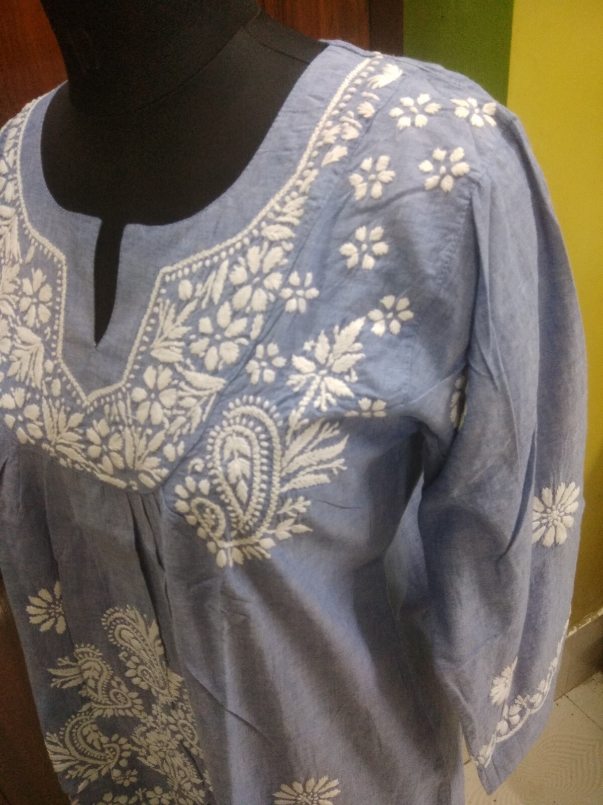 как выглядит M 40 41 HANDMADE CHIKAN EMBROIDERY ETHNIC DENIM 100 COTTON TOP KURTA KURTI TUNIC фото