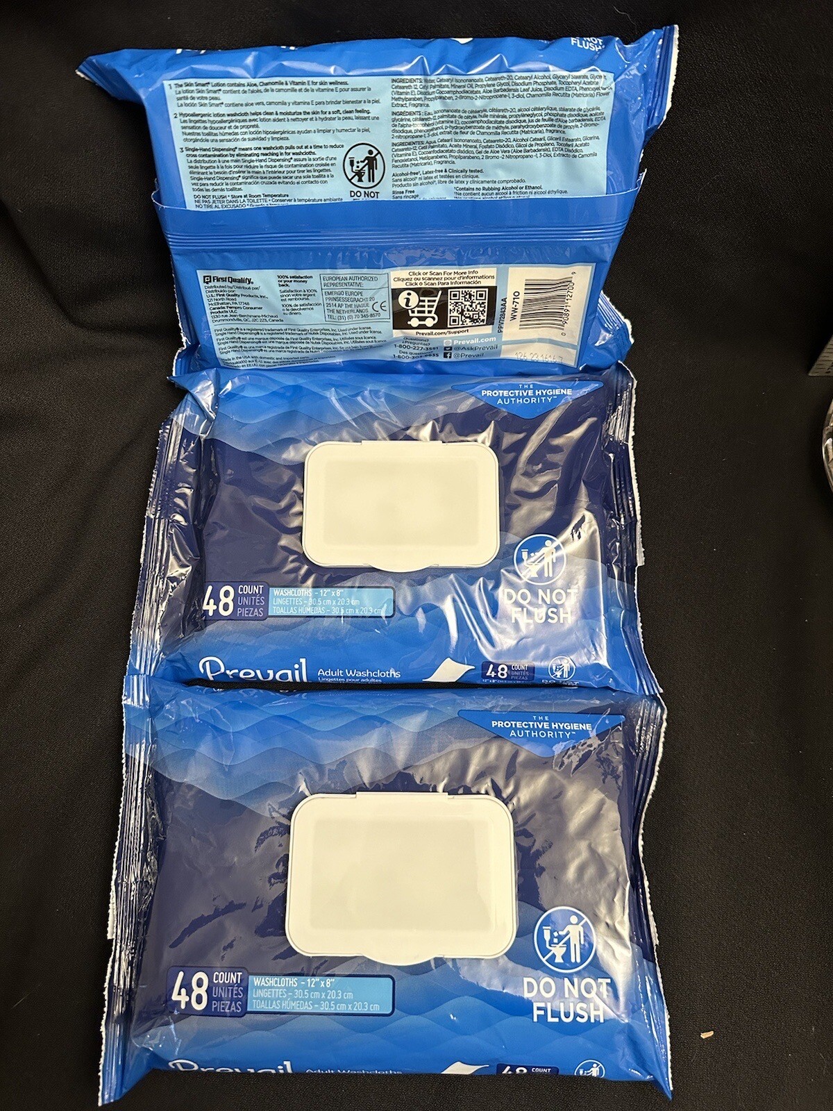 Lot of 3 Prevail Adult Washcloths Disposable Cleaning Aloe Vitamin E Sealed New