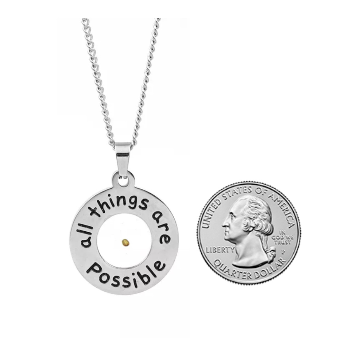 Mustard Seed "All Things Are Possible" Circle Necklace Pendant Stainless Steel