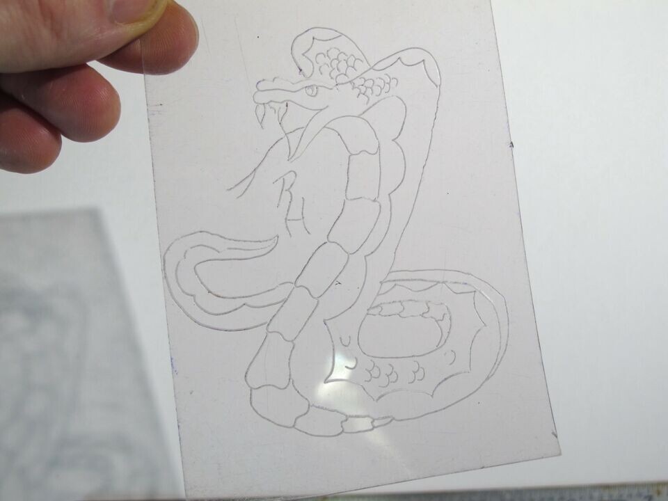 vtg 1960s 70s Tattoo Flash acetate stencil Full Cobra signed SN1