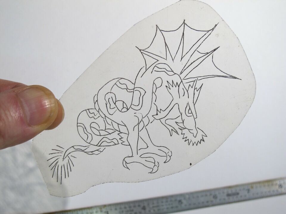 vtg 1960s 70s Tattoo Flash acetate stencil Winged Dragon v1 SN1