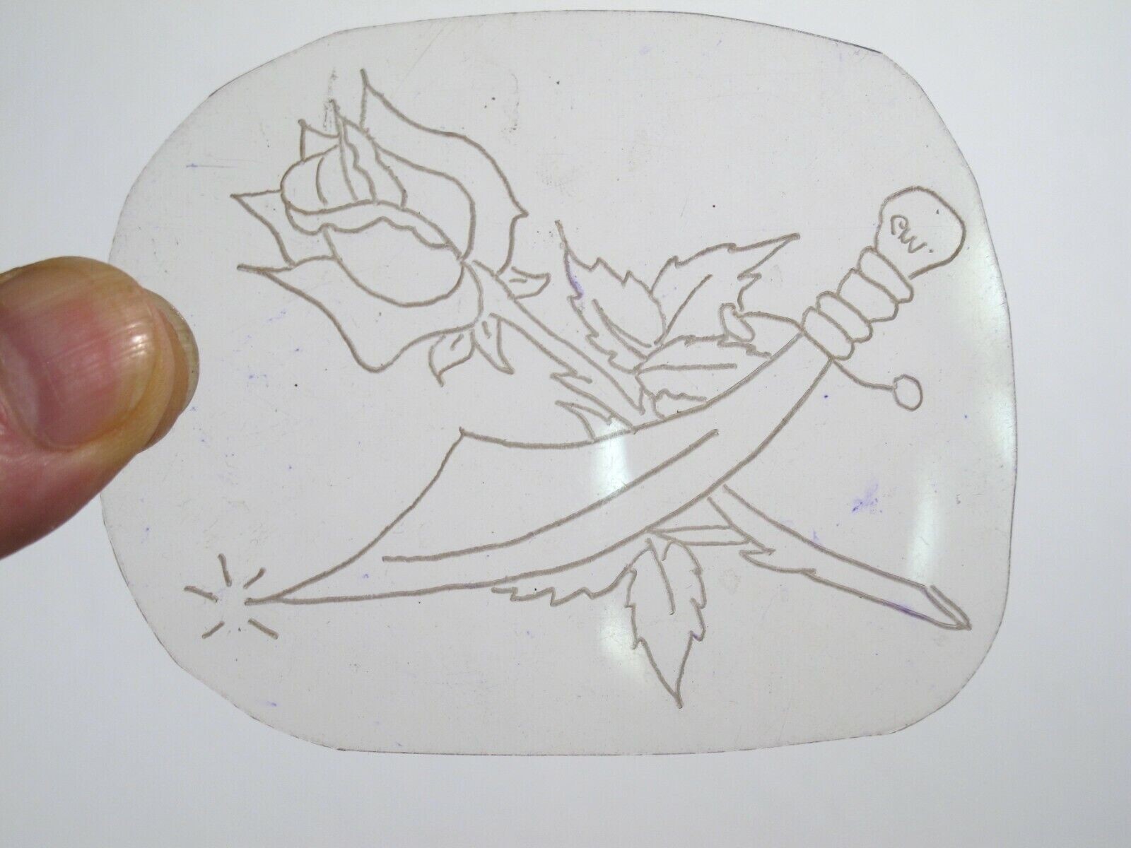 vtg 1960s 70s Tattoo Flash acetate stencil Dagger and Rose v2 KN1