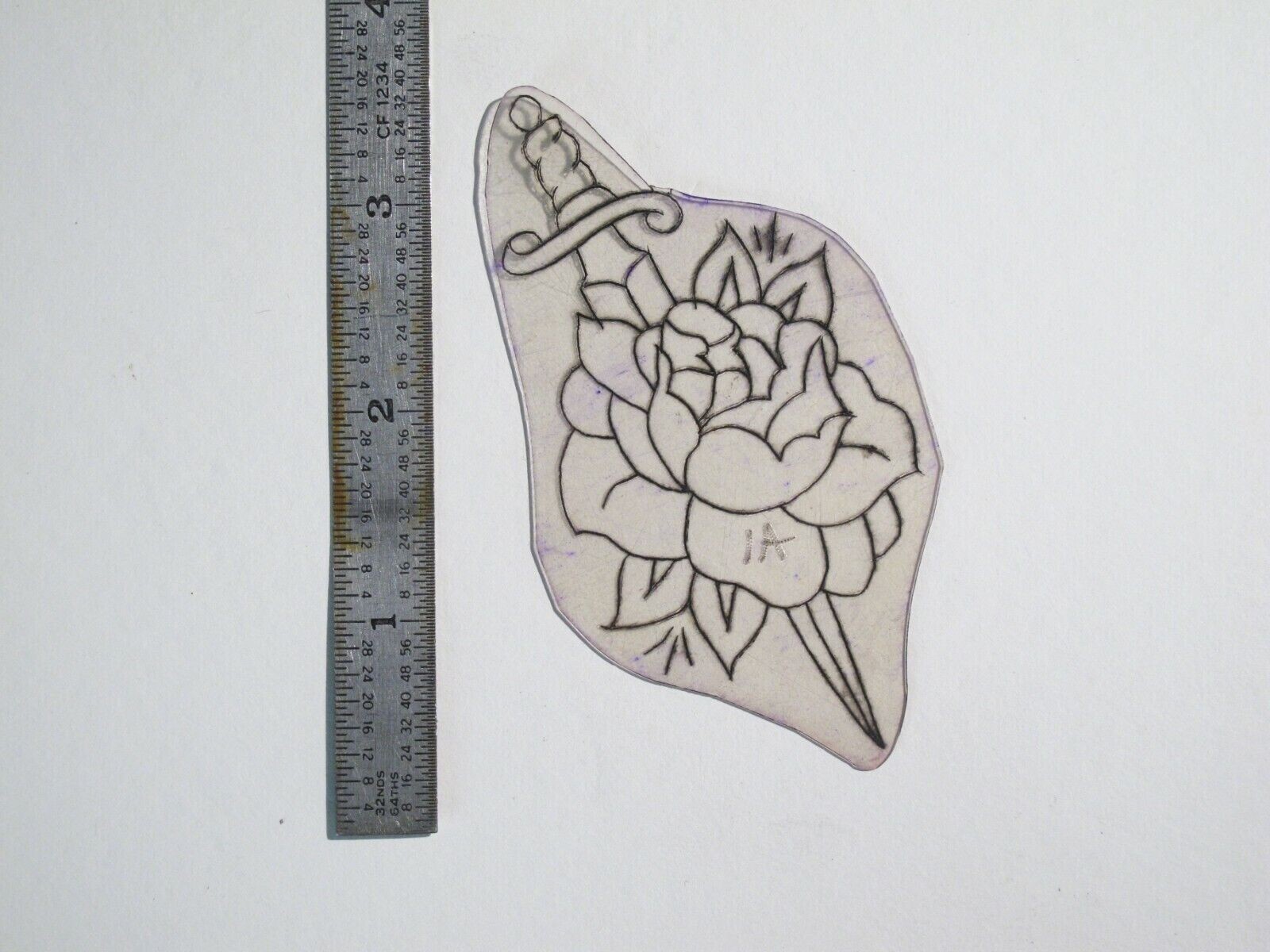 old 1940s 50s Tattoo Flash genuine acetate Sword and Rose KN1