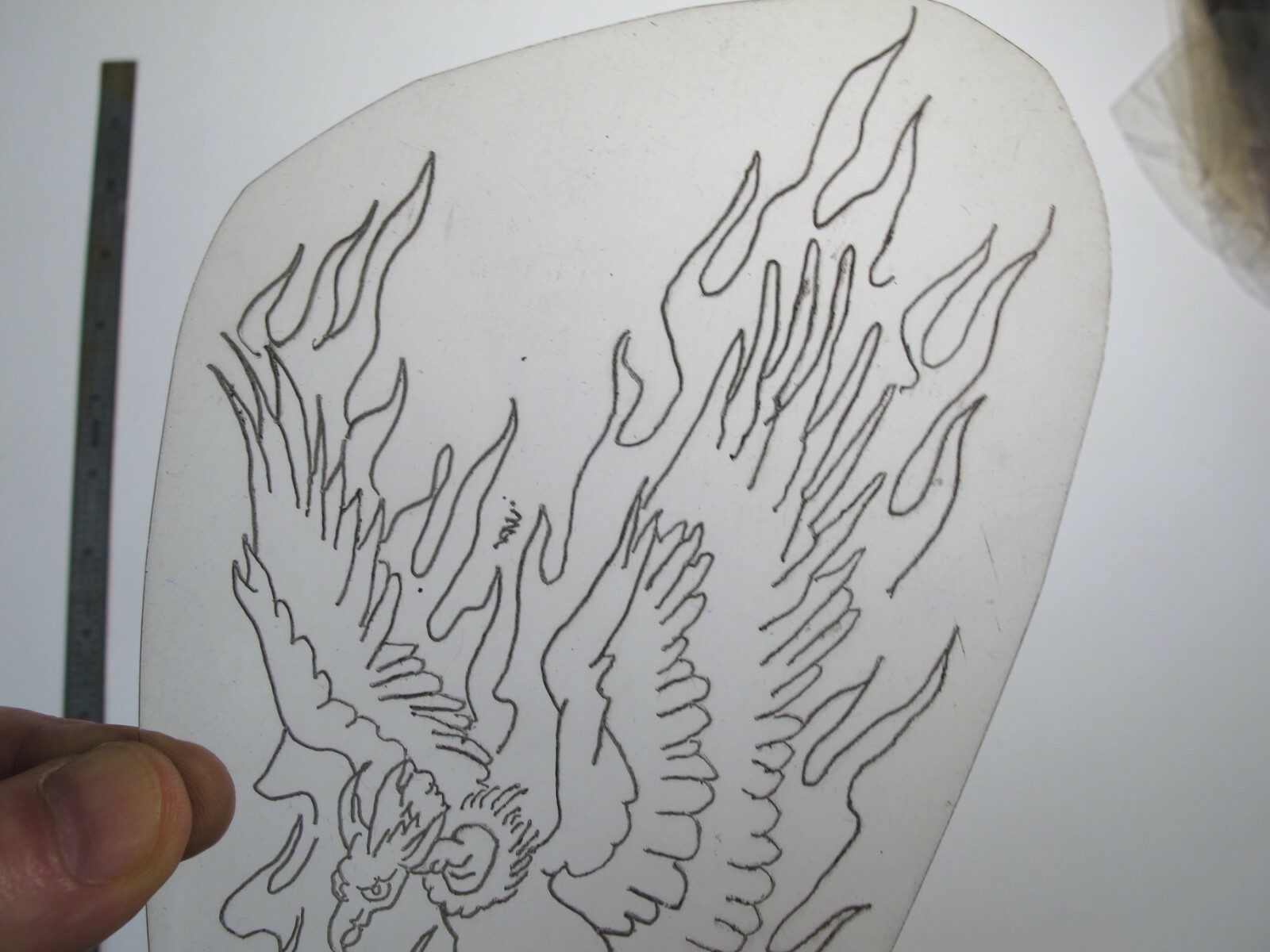 vtg 1960s 1970s Tattoo acetate stencil Fiery Phoenix LG. signed