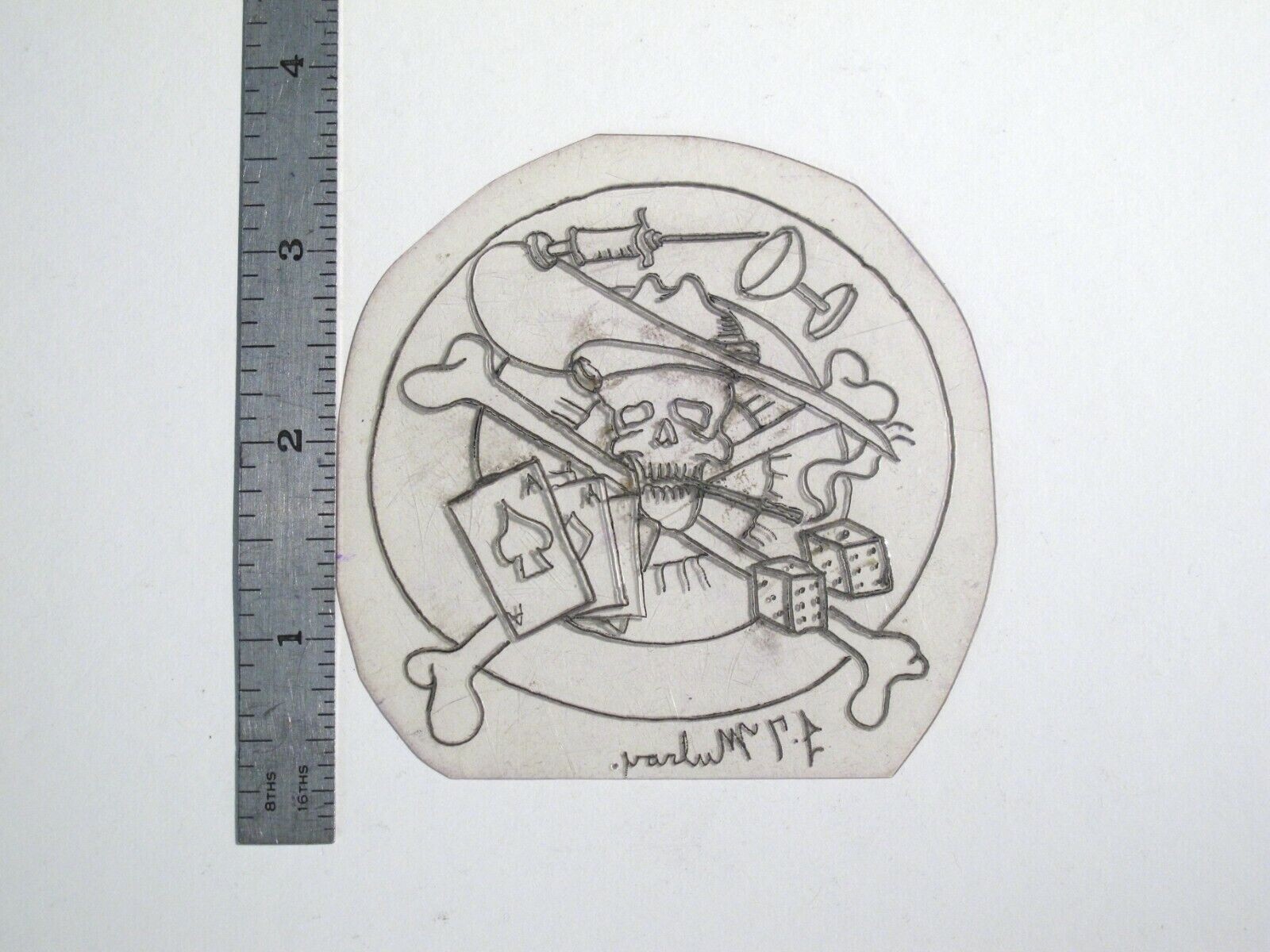 vtg 1960s 1970s Tattoo acetate stencil Gambling Bad Habits skull signed SK4 v2