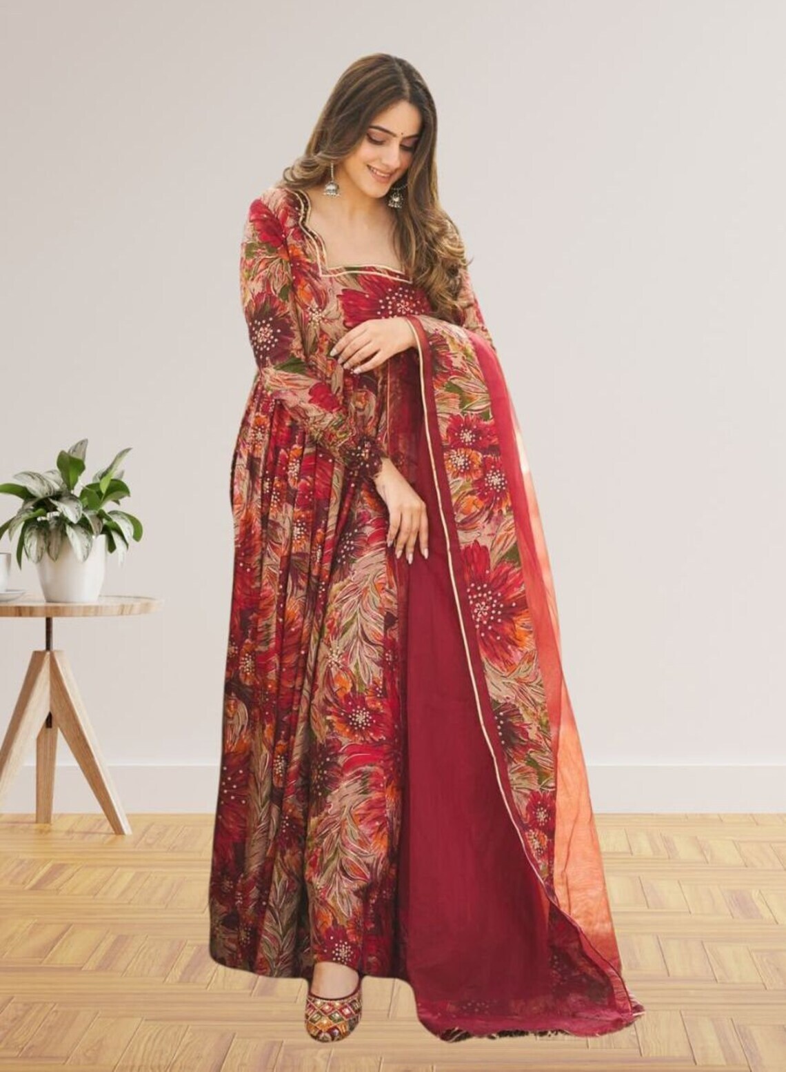 Gown: Heavy Rayon With Digital Print & Full Sleeves