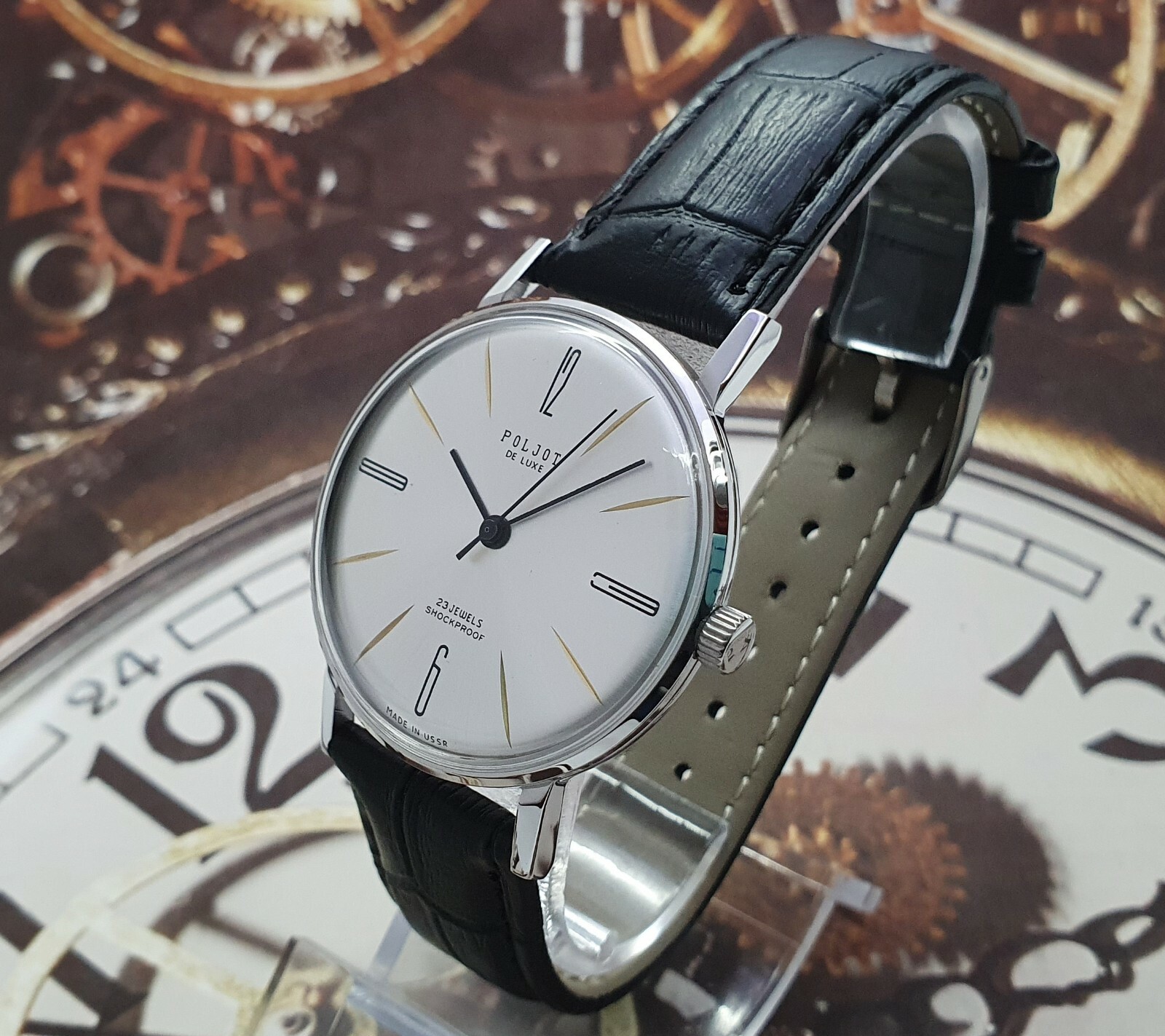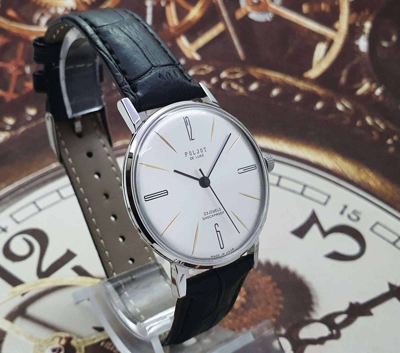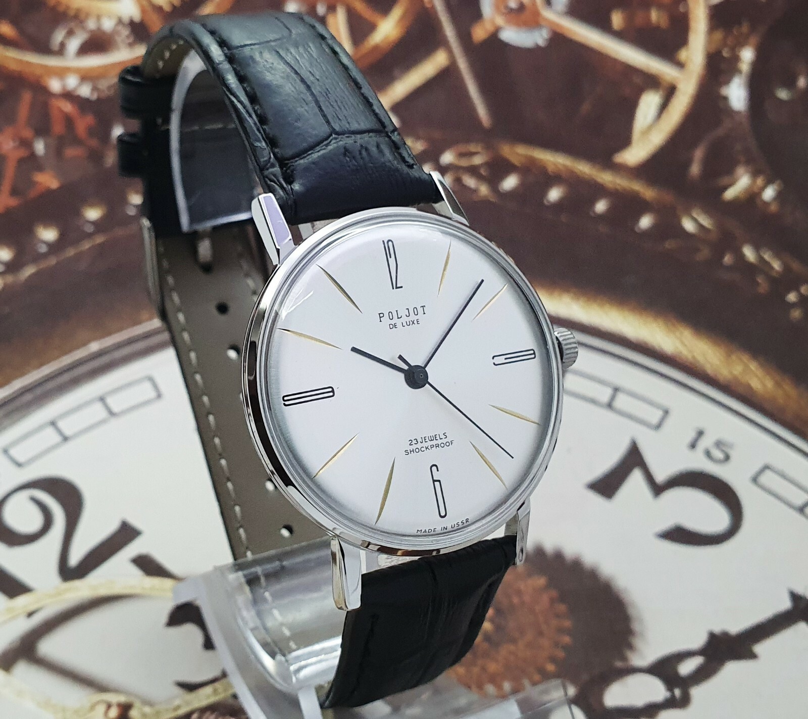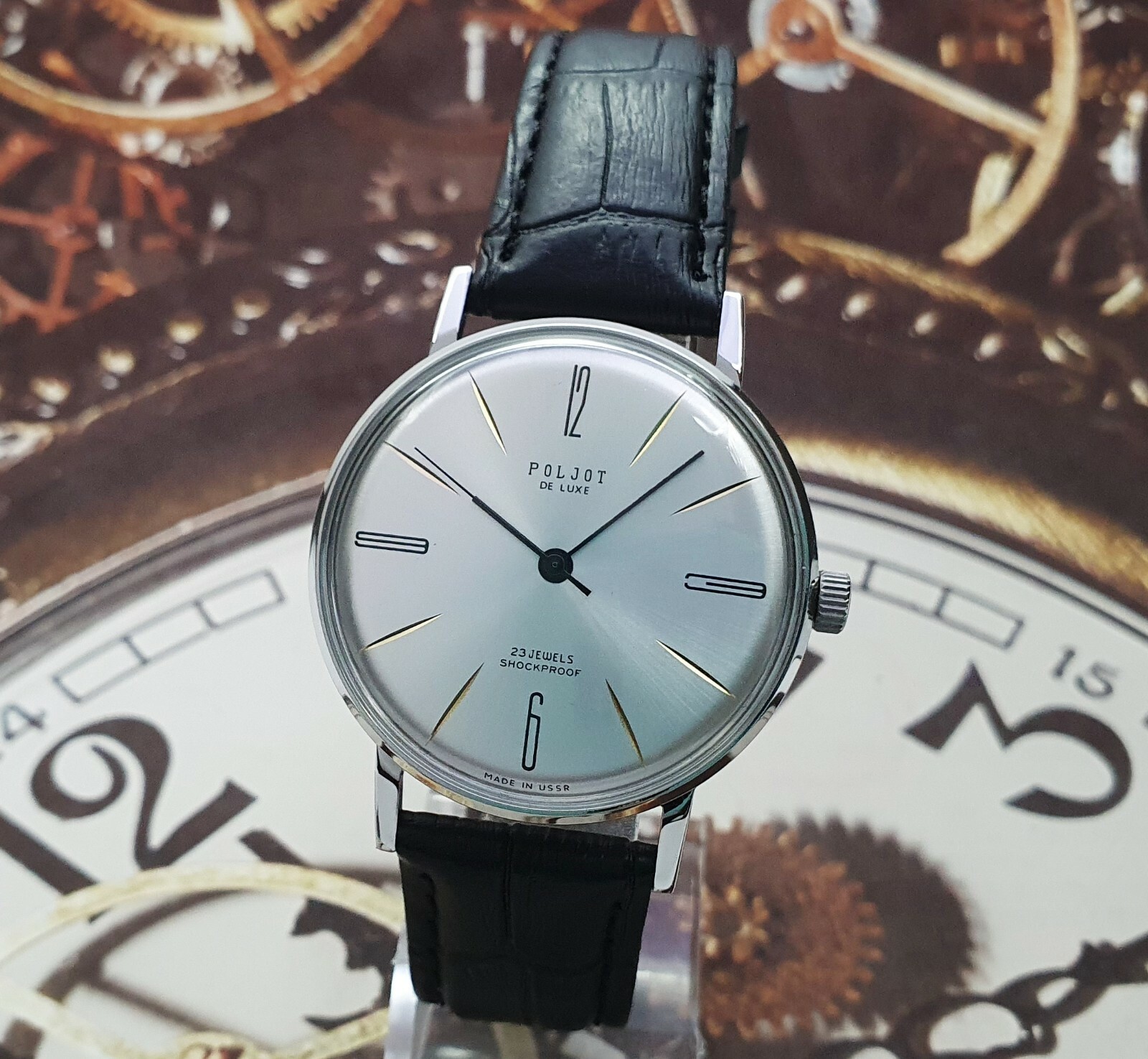 Vintage Watch USSR Poljot De LUXE Ultra SLIM Soviet Men's Wristwatch 23 Jewels