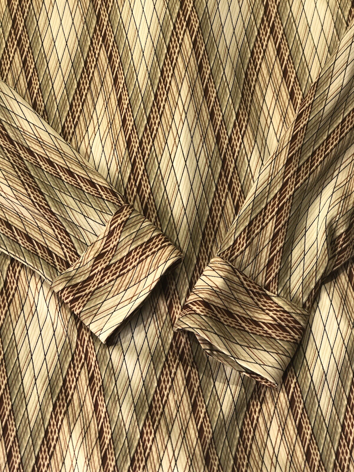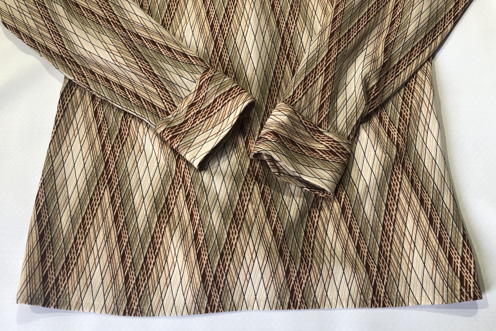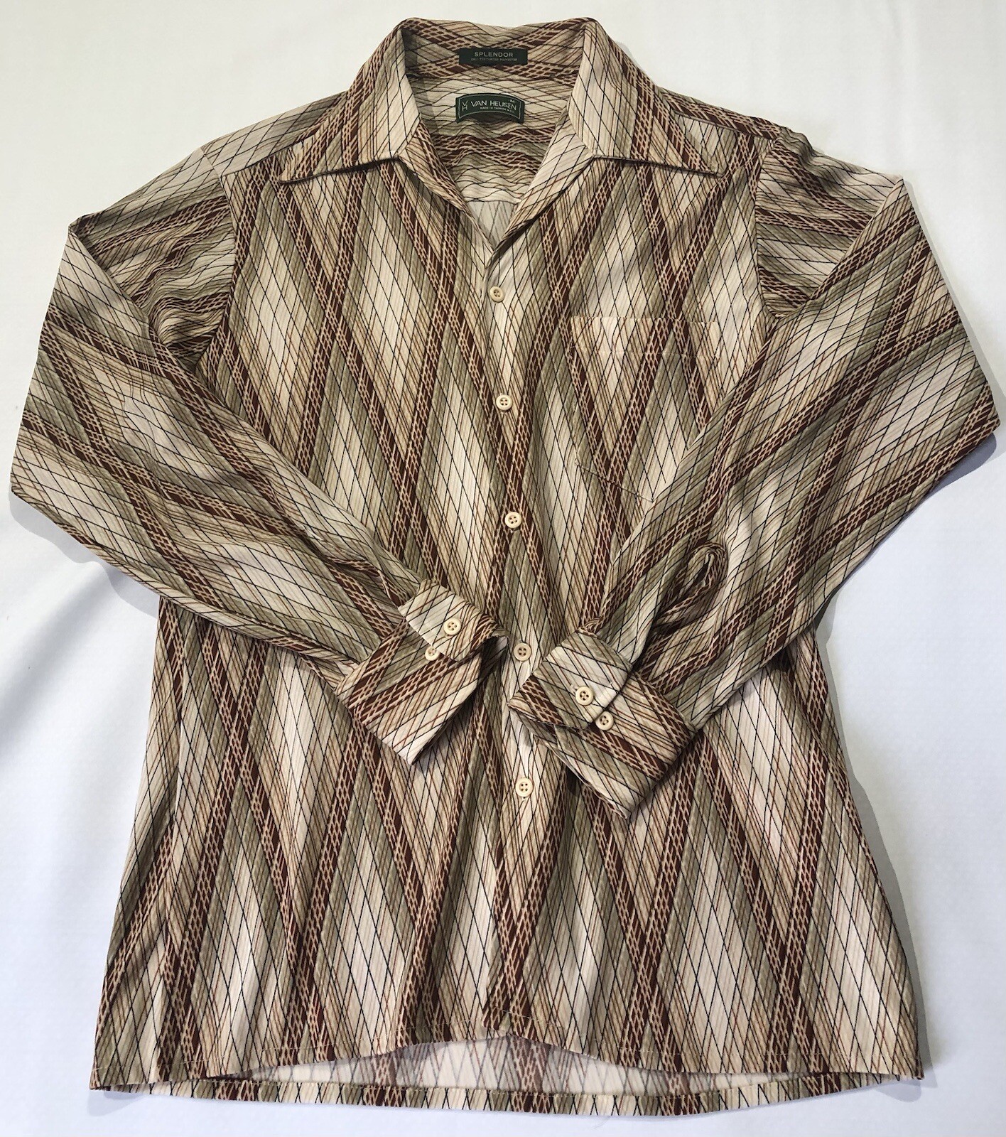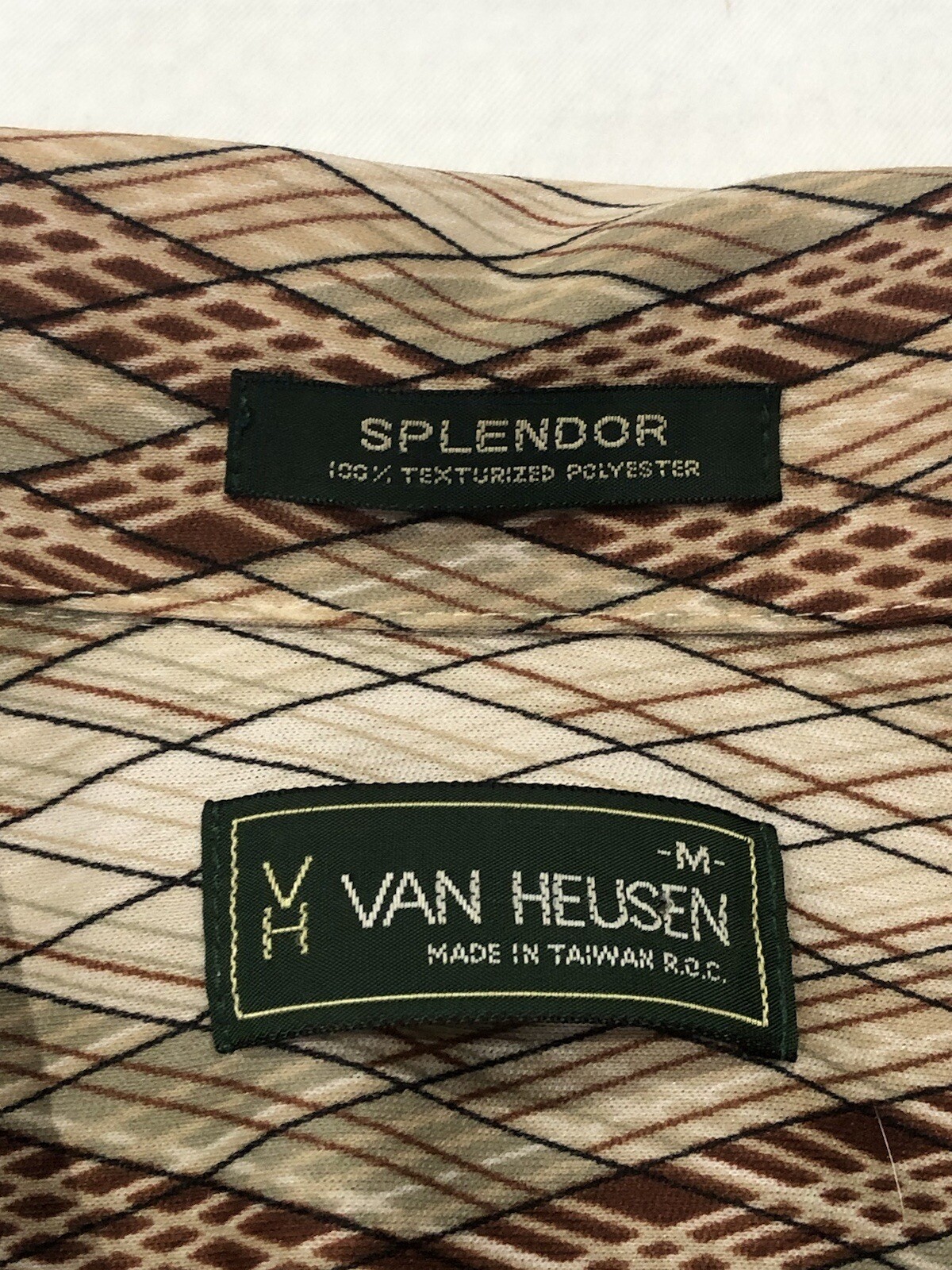 Vtg 70's Van Heusen Splendor KNIT Tan Brown M DISCO Butterfly Collar Shirt Med