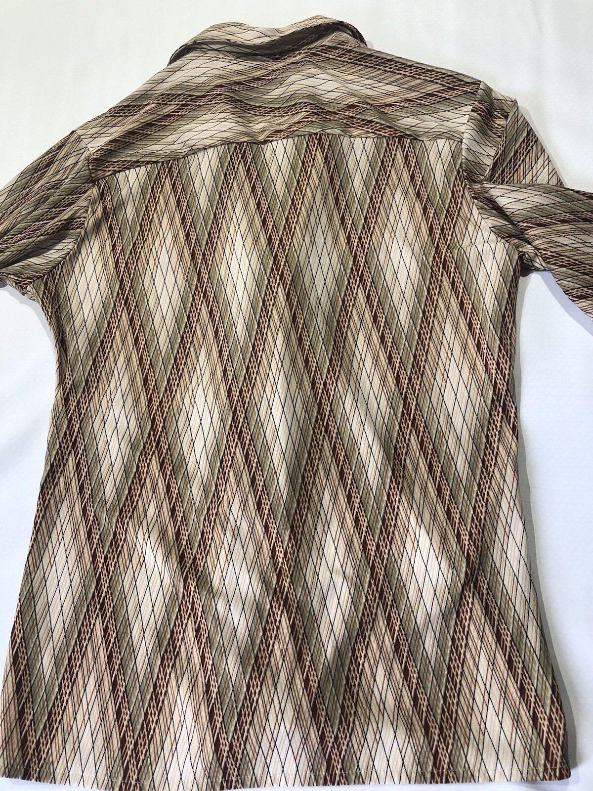 как выглядит Vtg 70s Van Heusen Splendor KNIT Tan Brown M DISCO Butterfly Collar Shirt Med фото