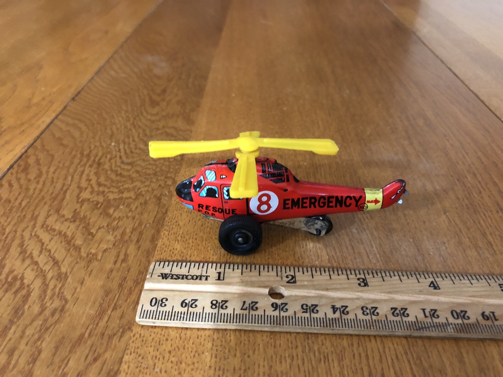 VINTAGE TIN EMERGENCY 8 RESCUE FDP HELICOPTER JAPAN MADE TOY