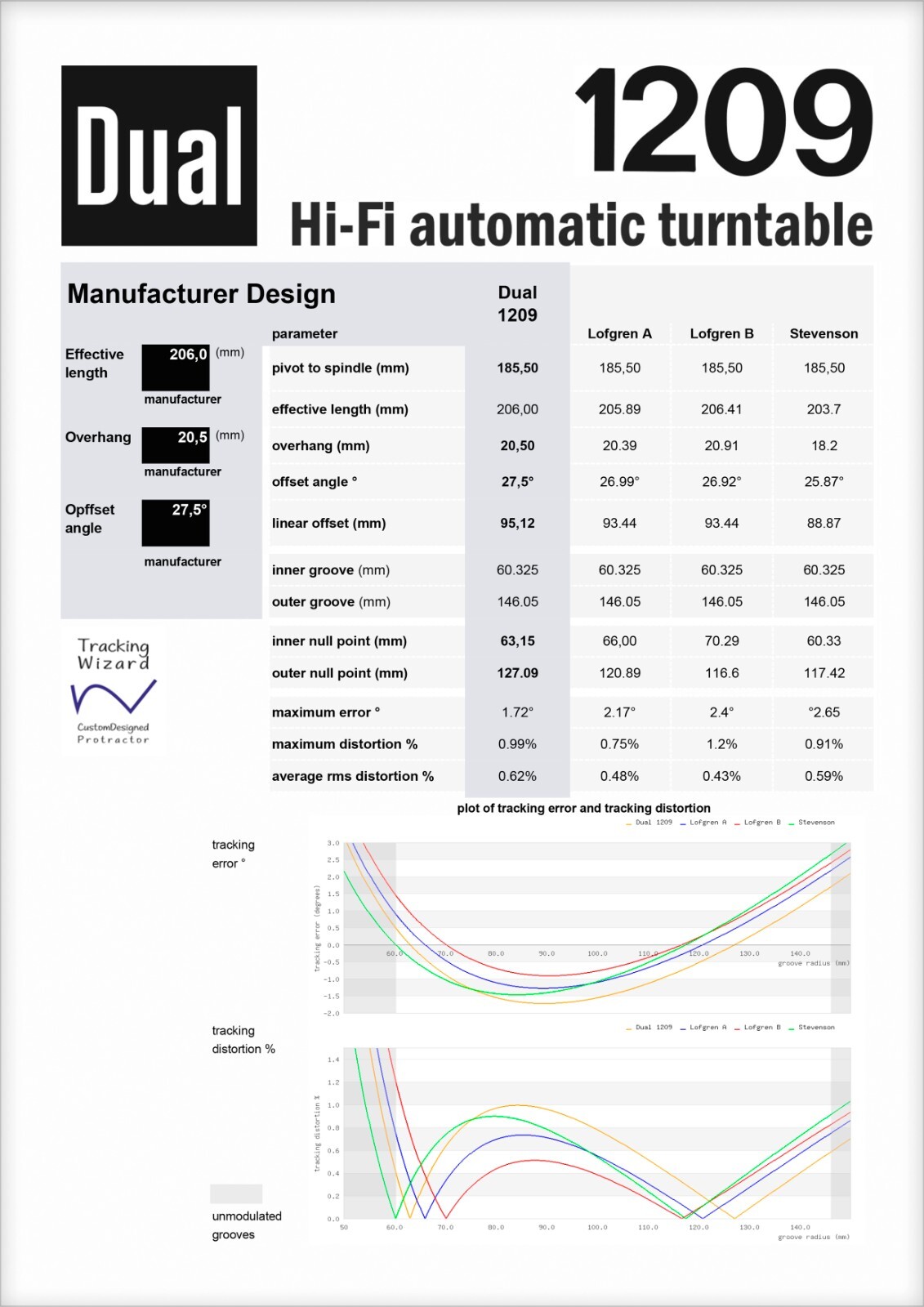 Dual 1209 Turntable Tonearm Cartridge Alignment Protractor