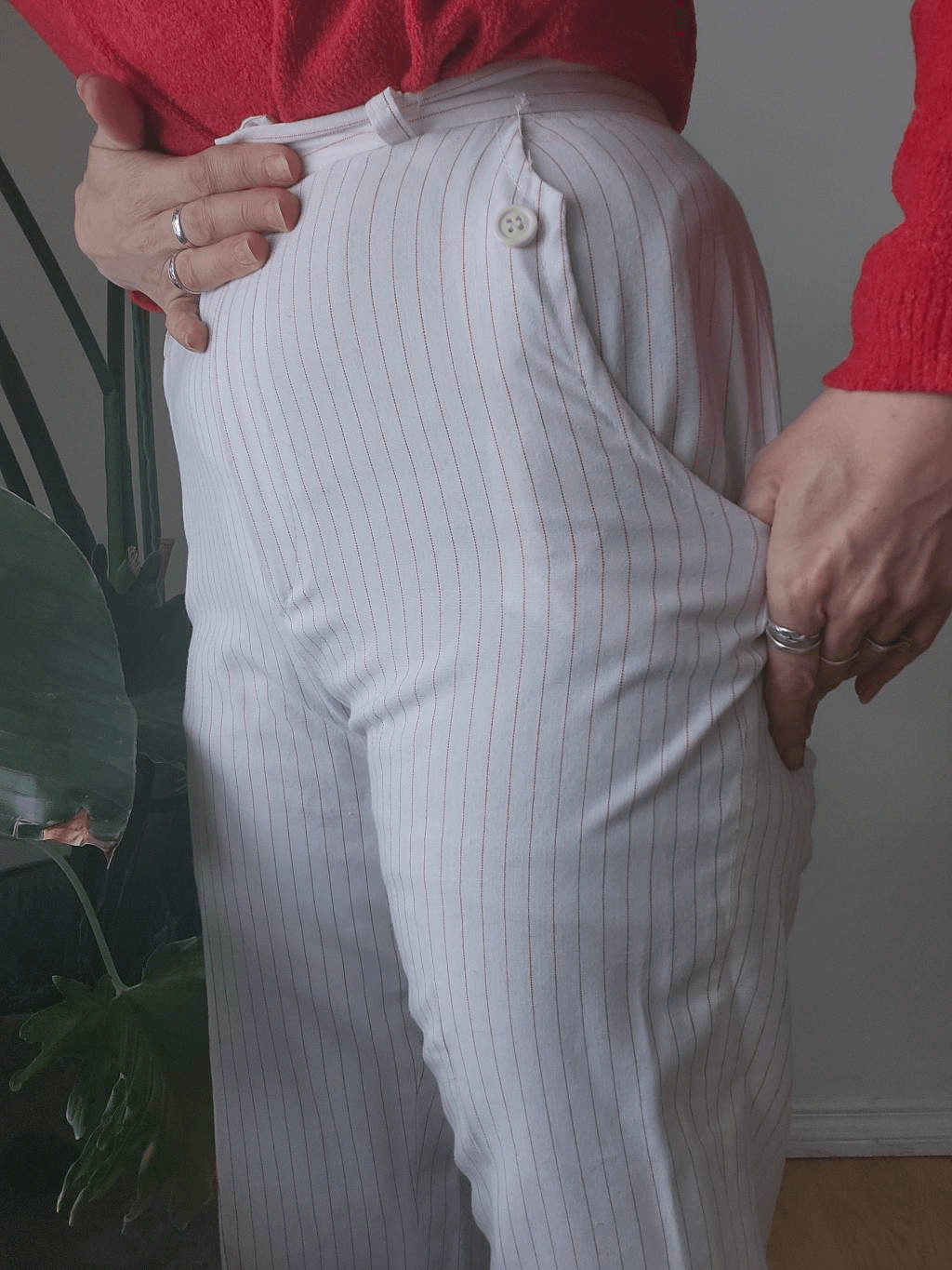 70s Pinestriped Red White Pants Pockets Vintage Slacks