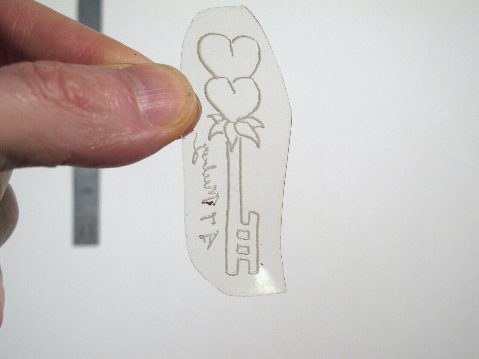 vtg 1960s 70s Tattoo Flash acetate stencil Two Hearts on Key signed HAR2