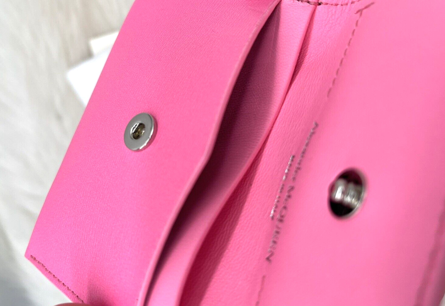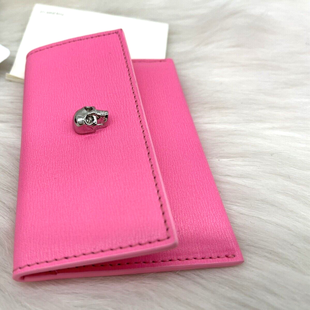 как выглядит AUTH NWOT Alexander McQueen Leather Business Card Holder In Fluo Pink фото