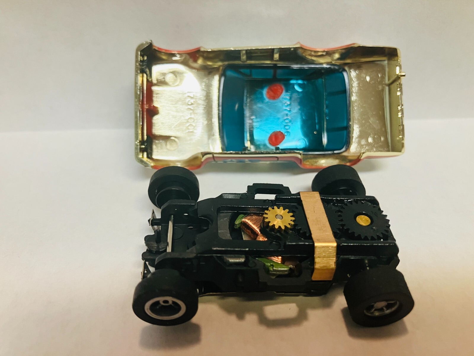 AFX RARE AURORA FORD ESCORT Gold Chrome AW Chassis display case NEW