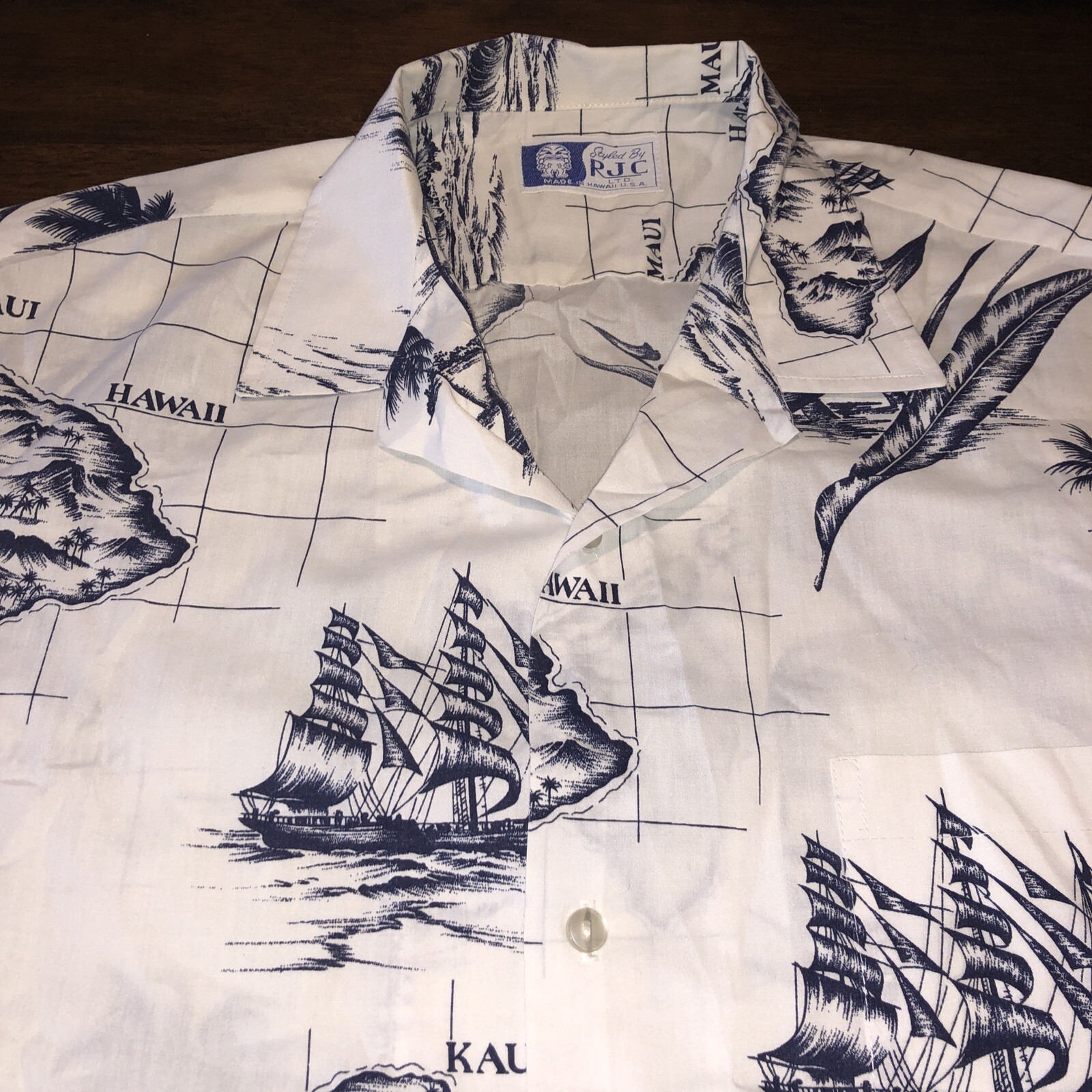 как выглядит Vtg Styled By RJC Hawaiian Shirt Mens XL Palm Trees Islands Sail Boats фото