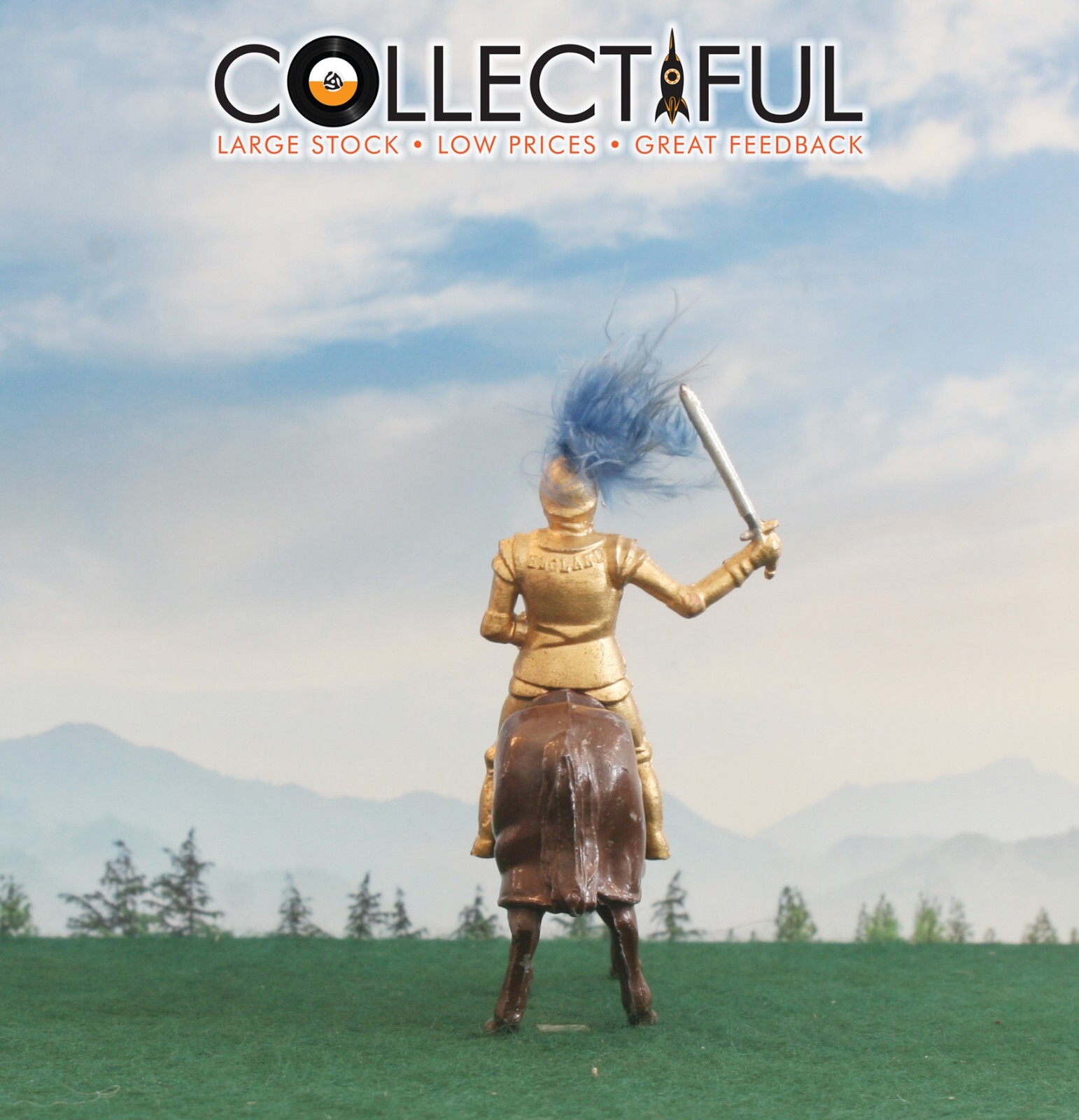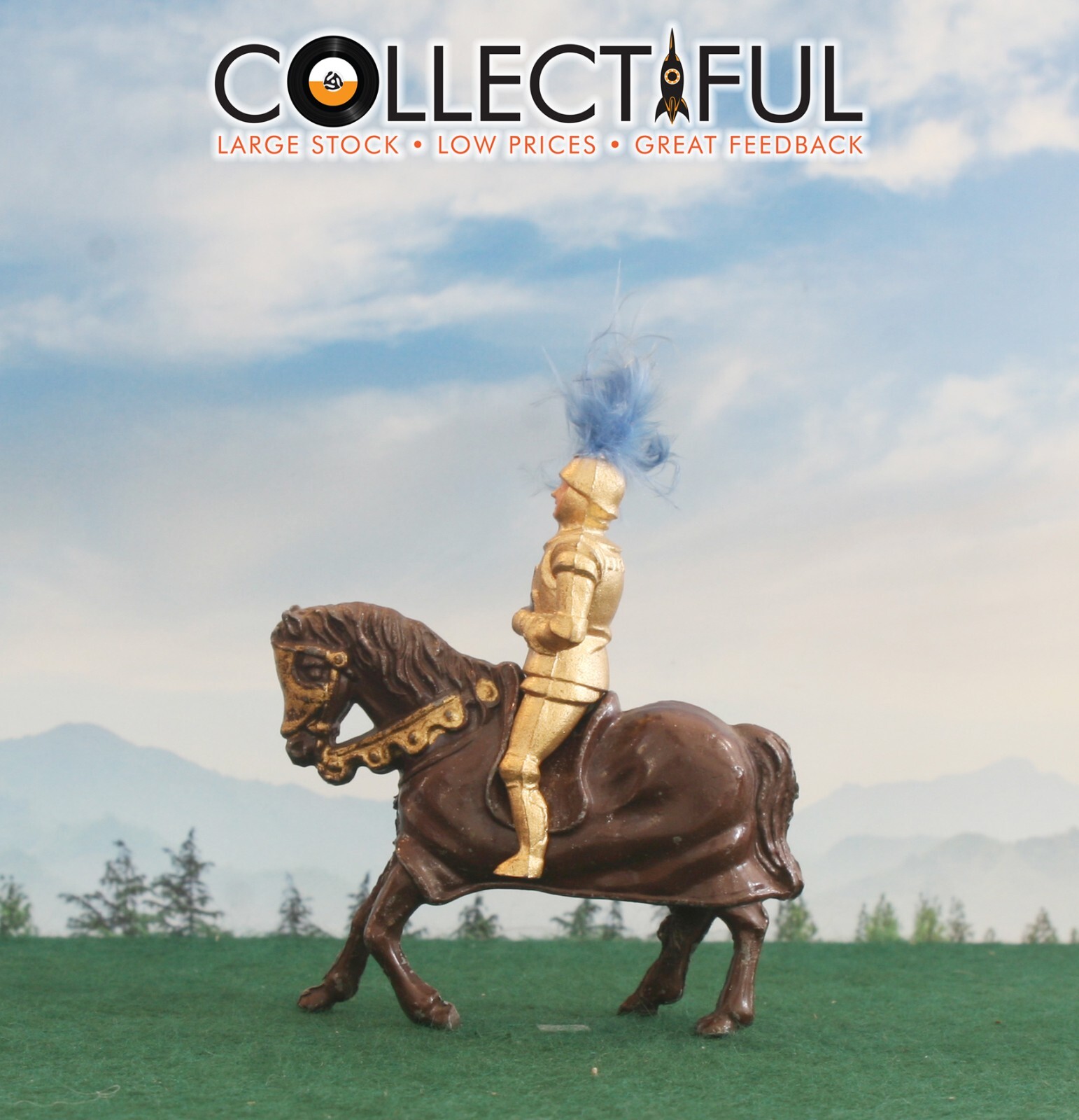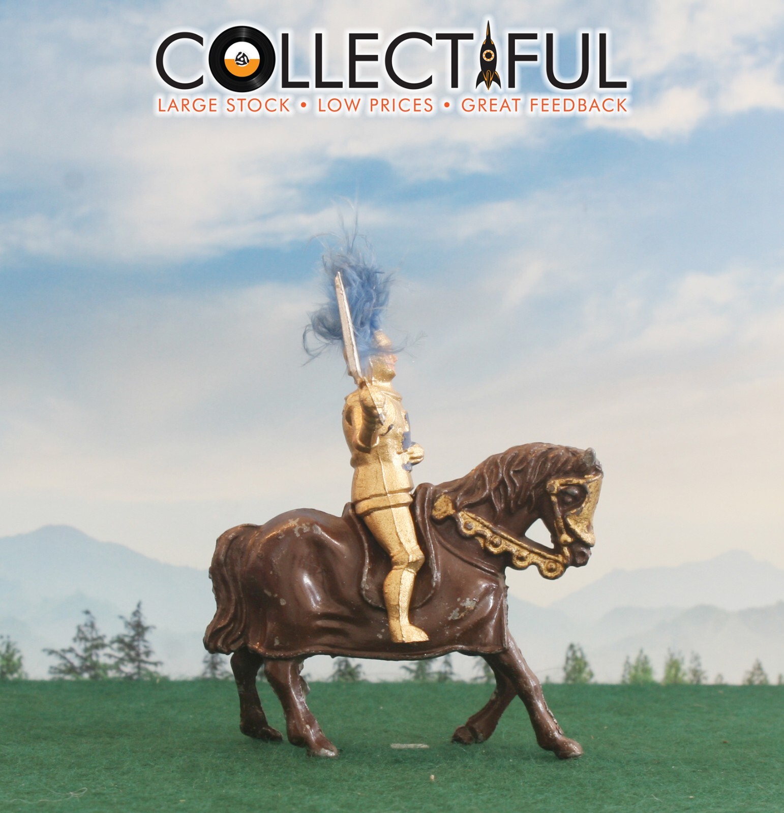 TIMPO LEAD FIGURE - MEDIEVAL KNIGHT CRUSADER ON HORSE - BRITAINS SIZE 1880