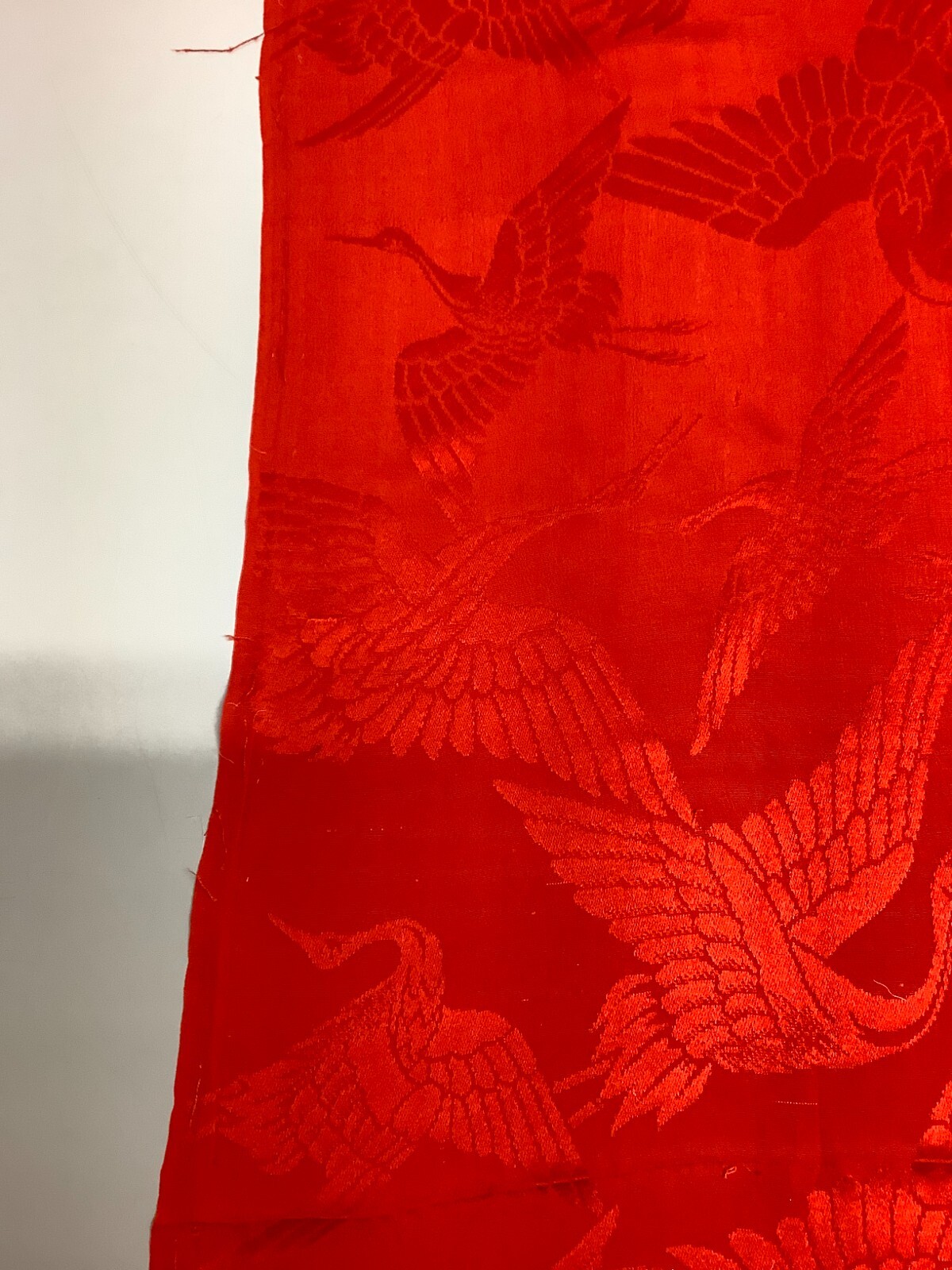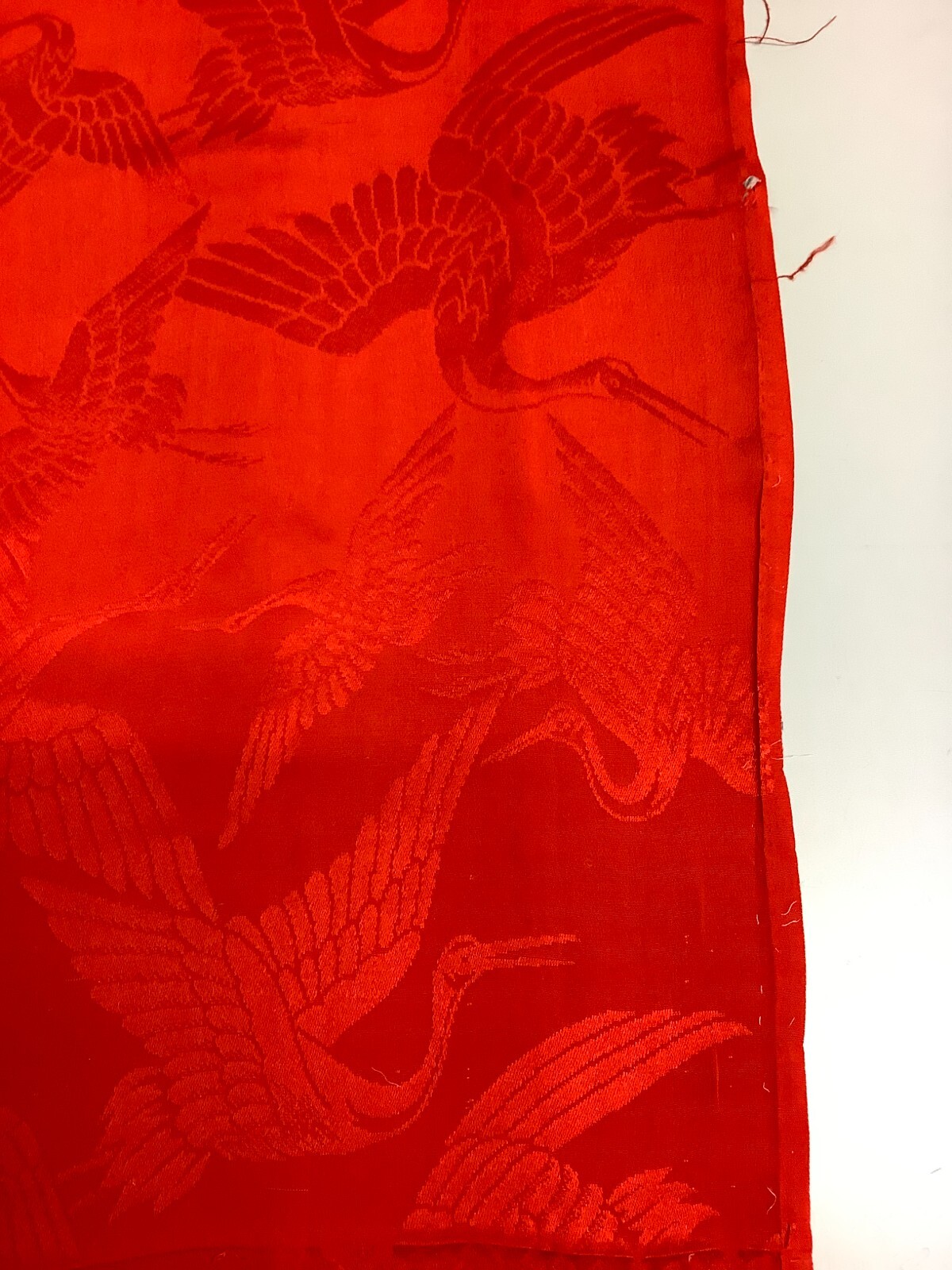 Japanese Vintage Kimono Fabric cloth Boro silk red crane scrub 52.7x12.9inch
