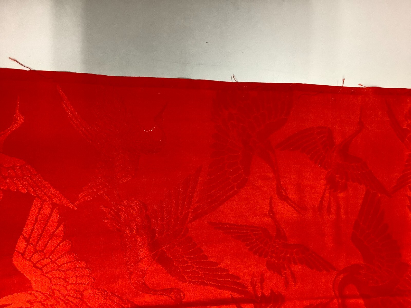 как выглядит Japanese Vintage Kimono Fabric cloth Boro silk red crane scrub 52.7x12.9inch фото