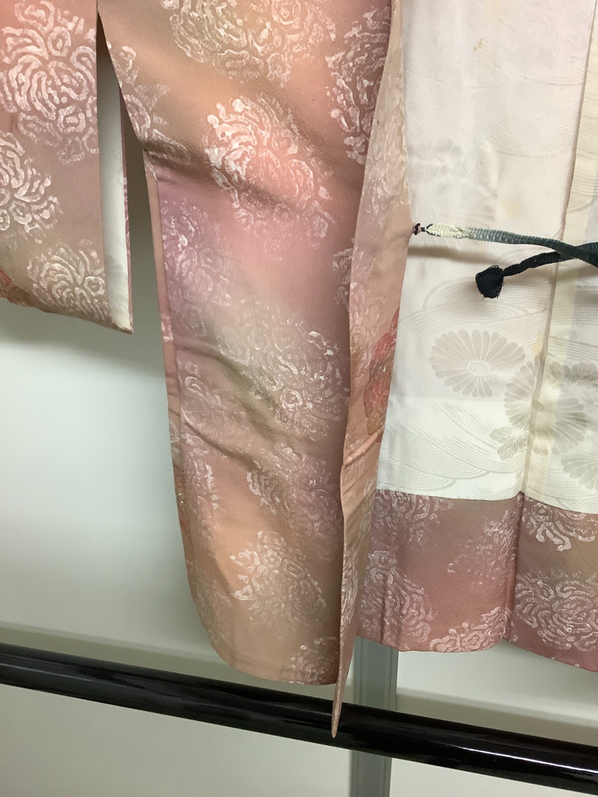 как выглядит Japanese Vintage Kimono Haori Jacket pure silk beige dirt Height 29.92inch фото