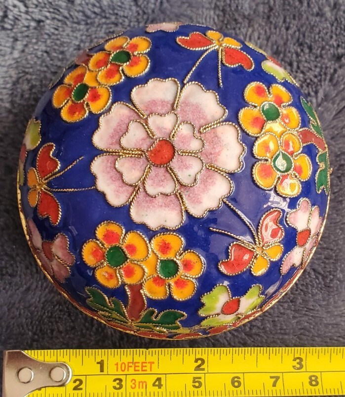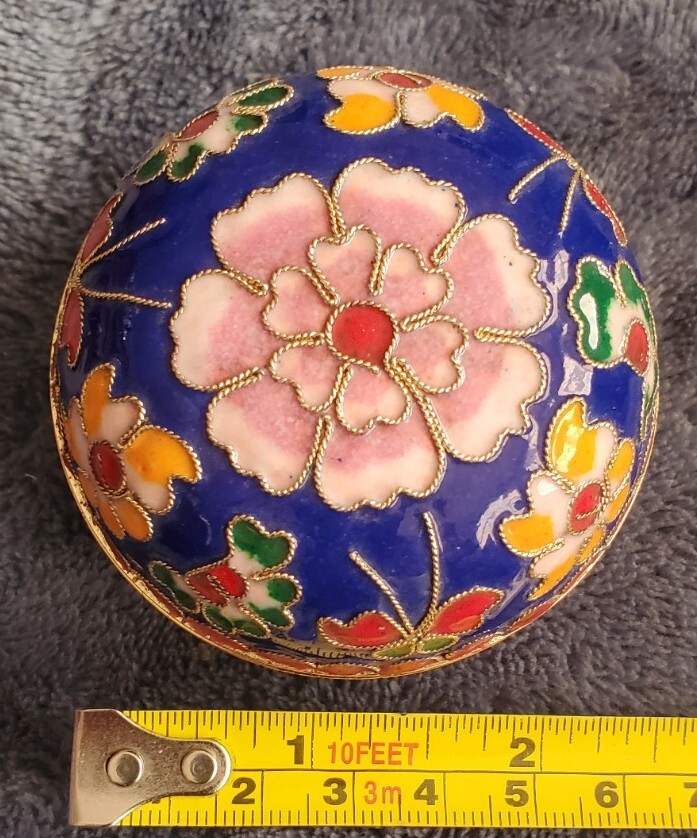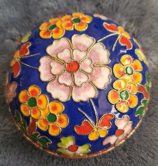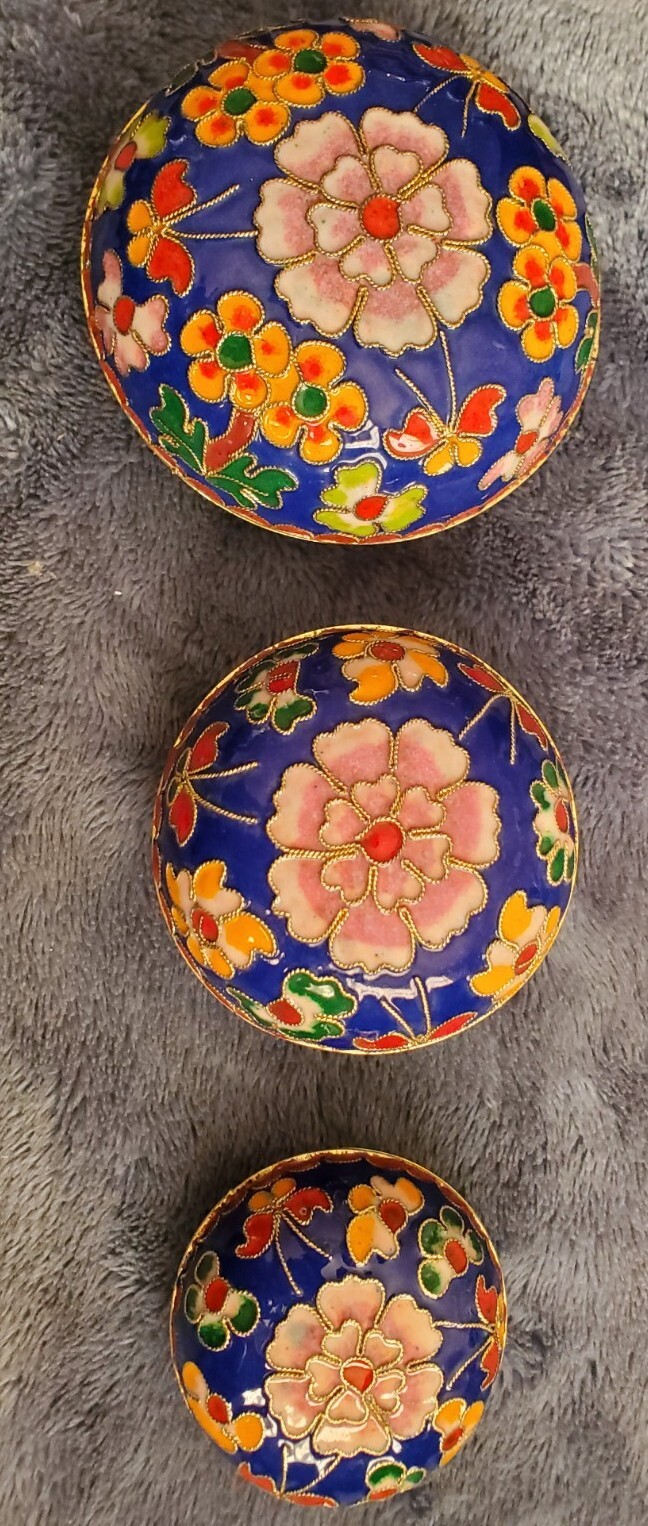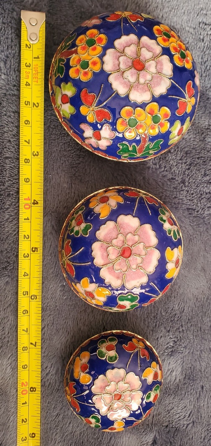 как выглядит Cloisonne Hand Crafted Chinese Jewelry Box Floral Blue Yellow , set of 3 pcs. фото