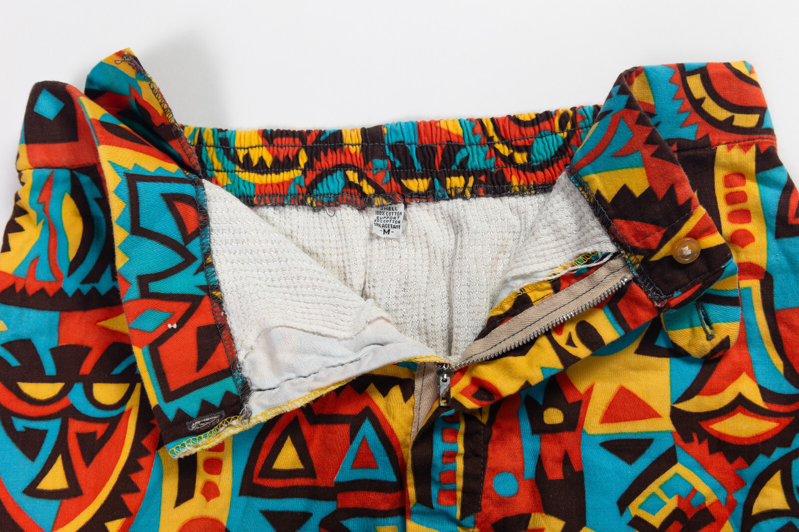 VTG 1960's TIKI HAWAIIAN BOARD SHORTS SURF SWIM TRUNK MID-CENTURY ATOMIC MEN S M