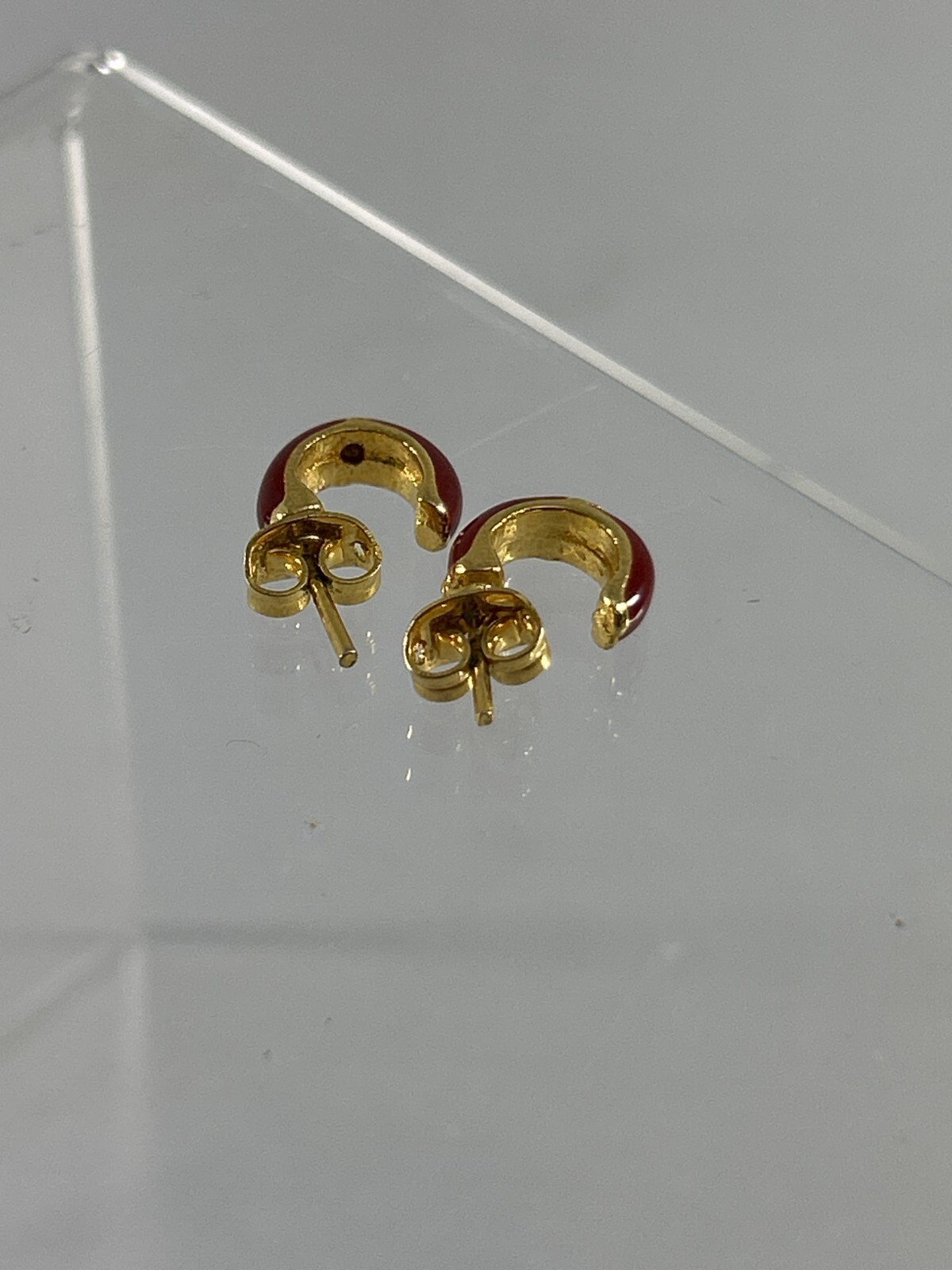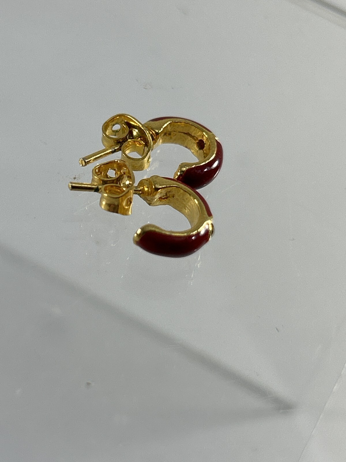 как выглядит Small Hoop Earrings Gold Tone Marron Red Enamel Rhinestones Pierced Studs фото