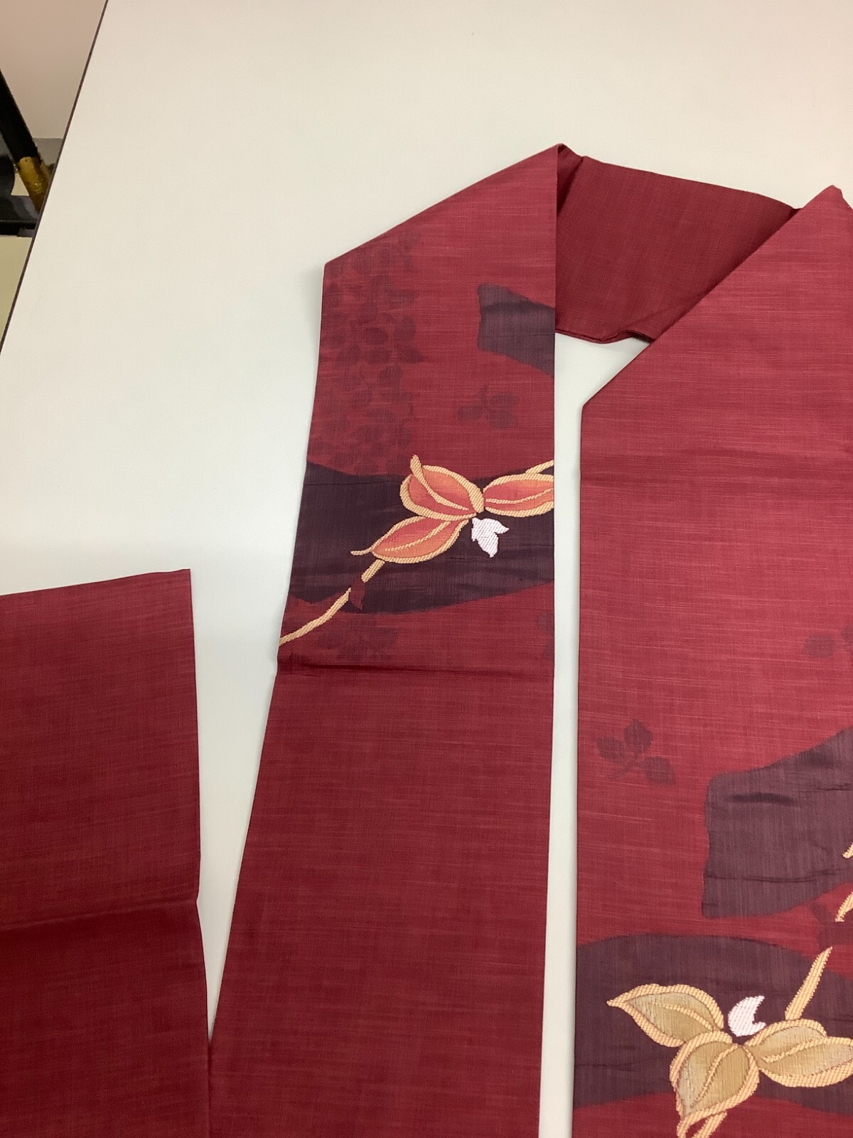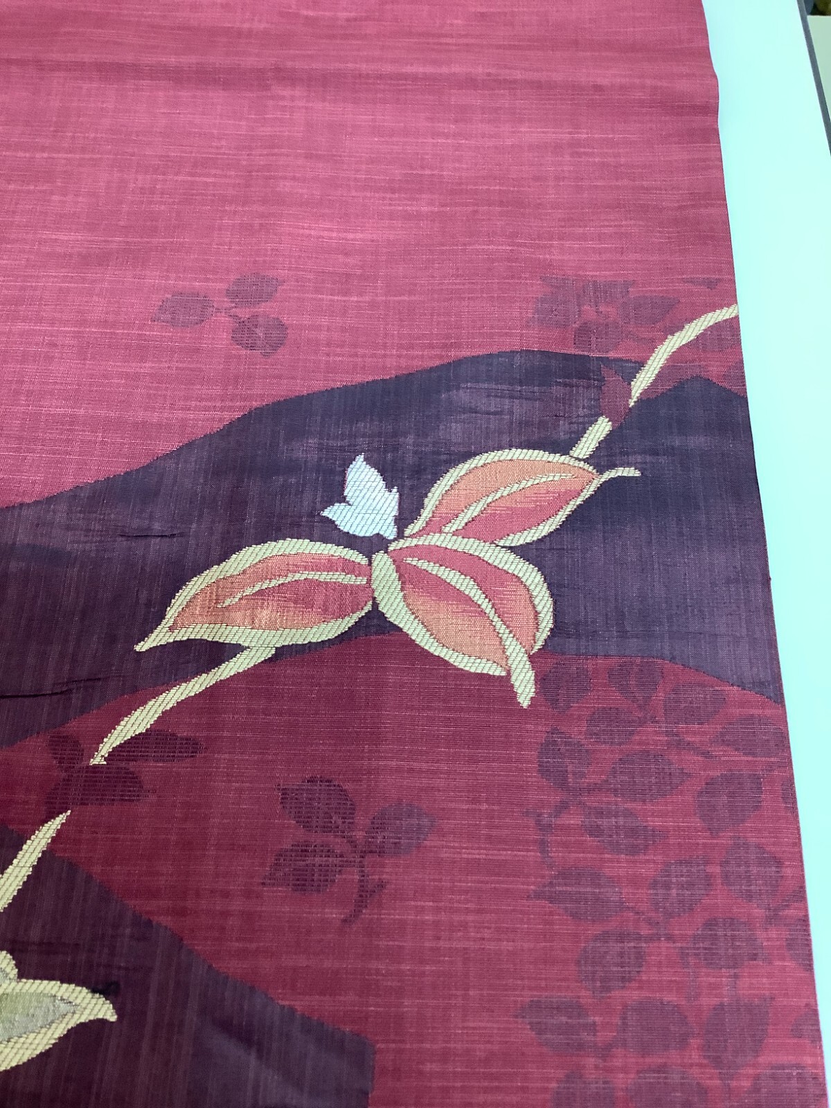 как выглядит Japanese Vintage Kimono Nagoya Obi pure silk Maron flower tradition 141.7x12.2in фото