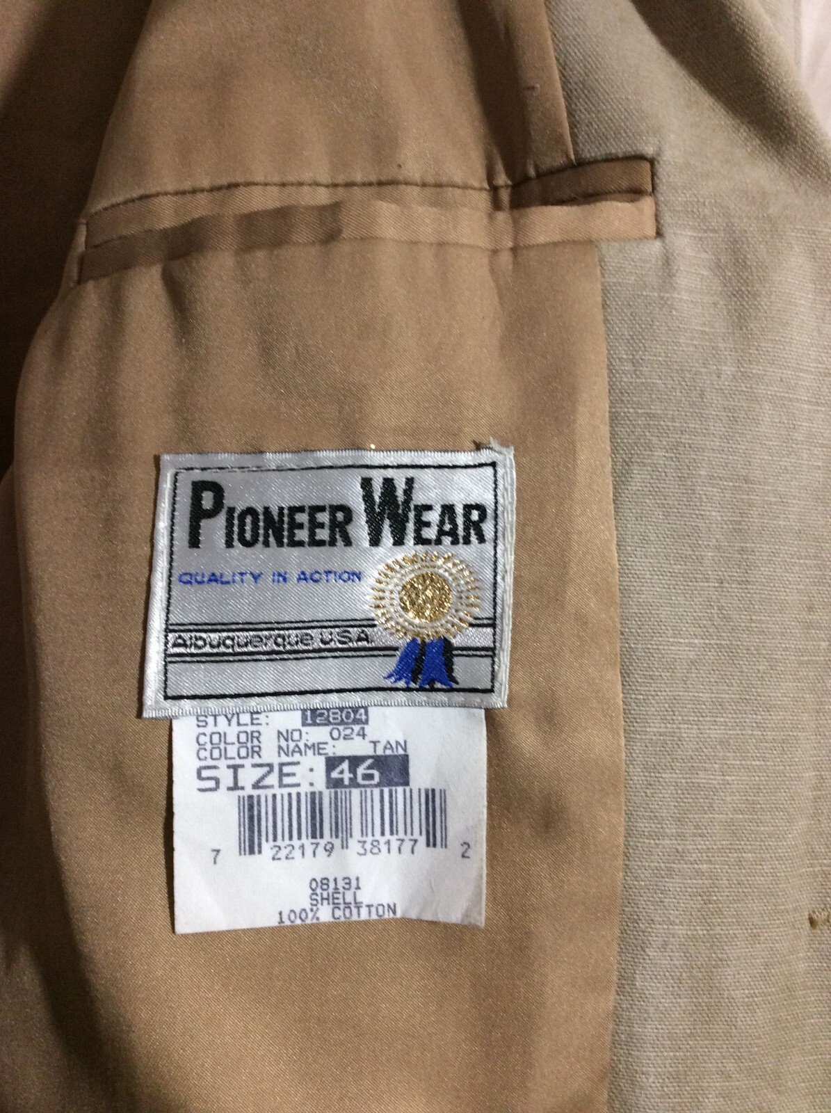 как выглядит Vintage PIONEER WEAR Mens 46 100 Cotton Tan Western Sport Coat Jacket USA EUC фото