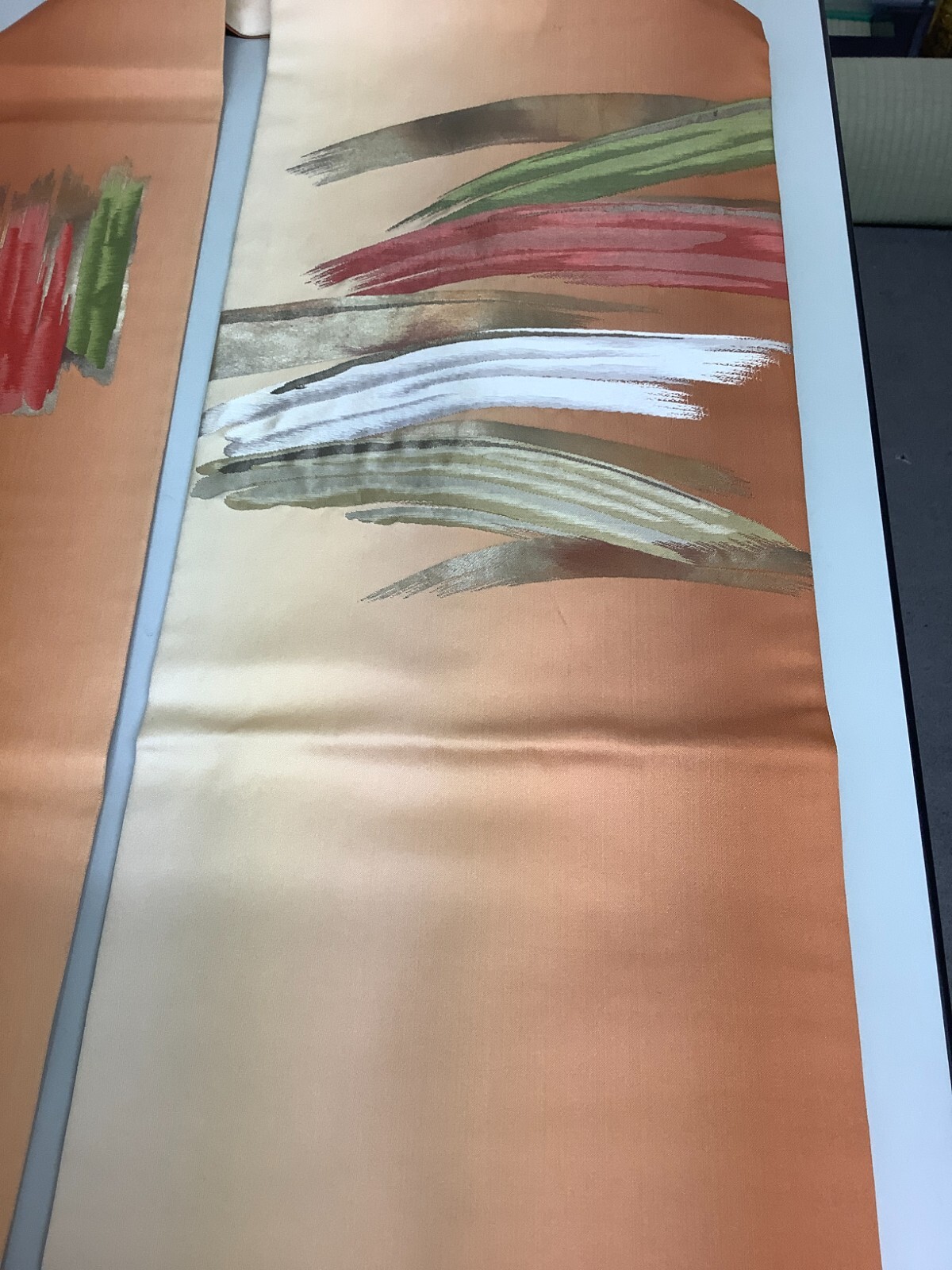 Japanese Vintage Kimono Nagoya Obi pure silk orange tradition 140.9x11.8inch