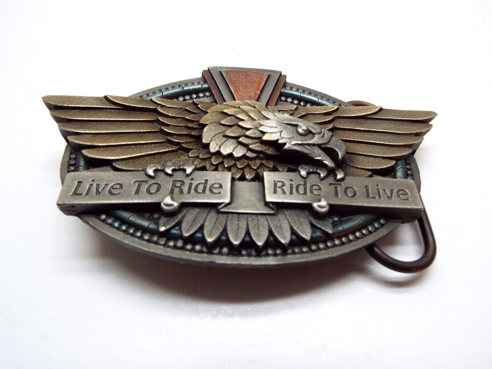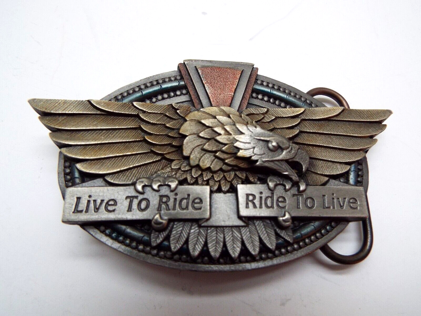 ''LIVE TO RIDE - RIDE TO LIVE'' SOARING EAGLE MOTORCYCLE BELT BUCKLE