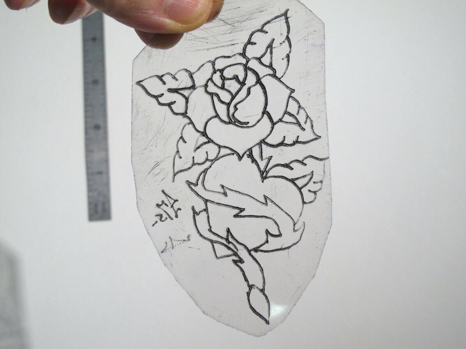vtg 1960s 70s Tattoo Flash acetate stencil Rose Thorns Heart v2 RS6