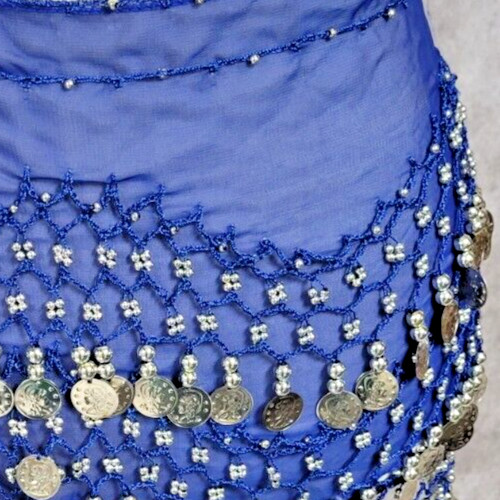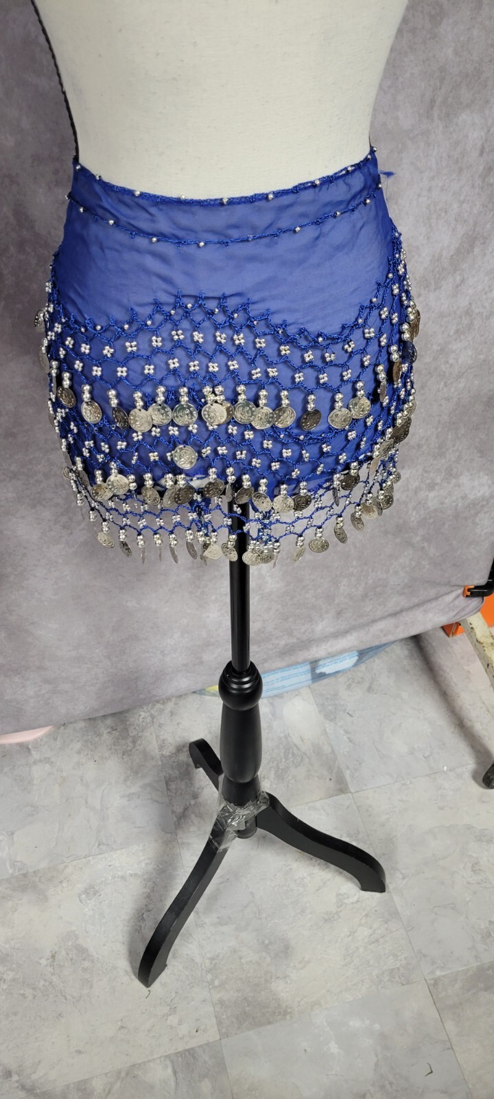 Belly Dance Hip Scarf. Royal Blue w/ Coins. Measures 57 width 12 tall.