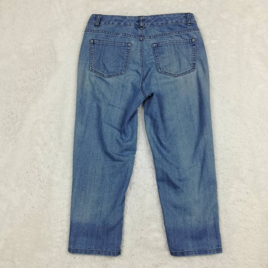Jones New York Womens Jeans Lexington Capri Blue Stretch 5 Pocket Whiskered 4