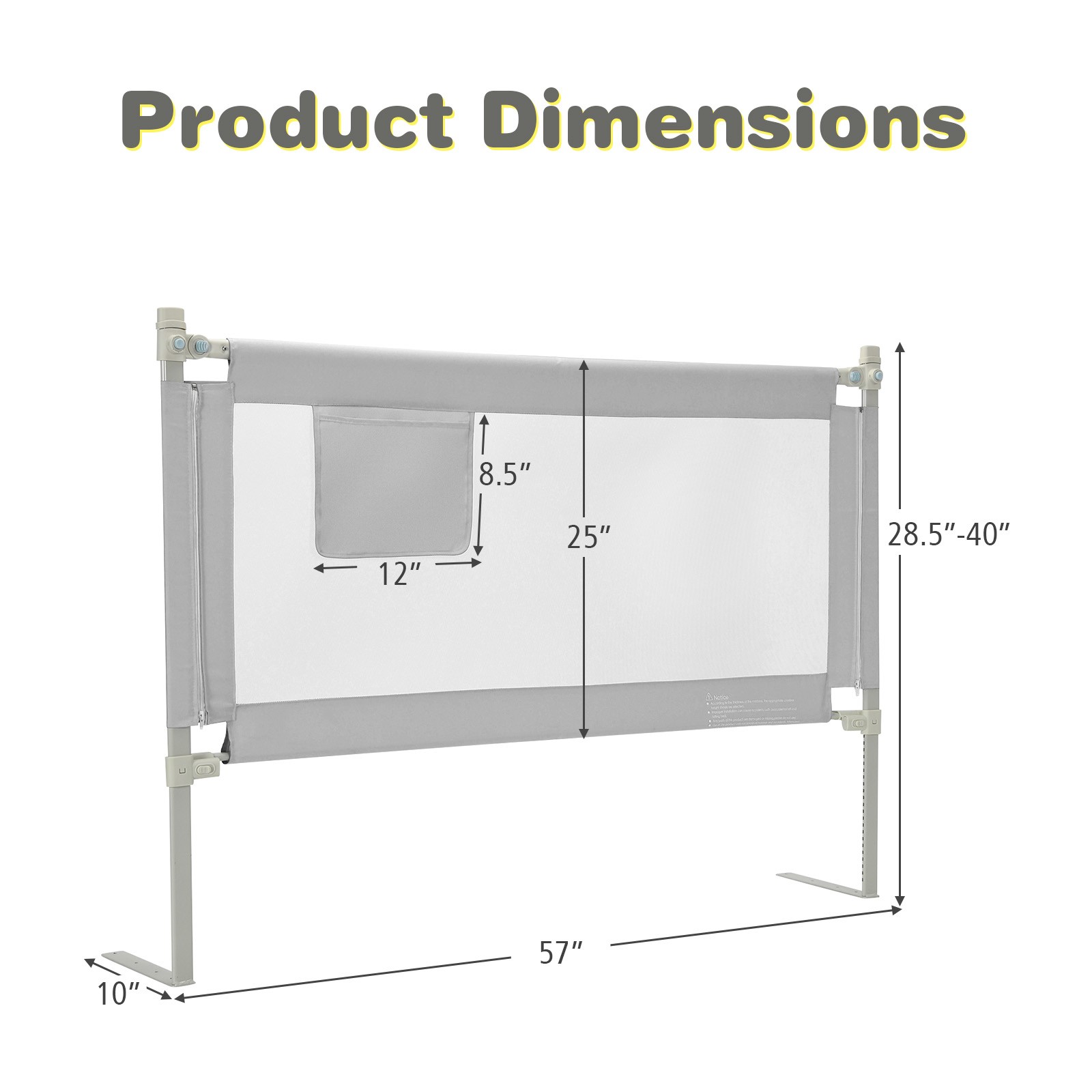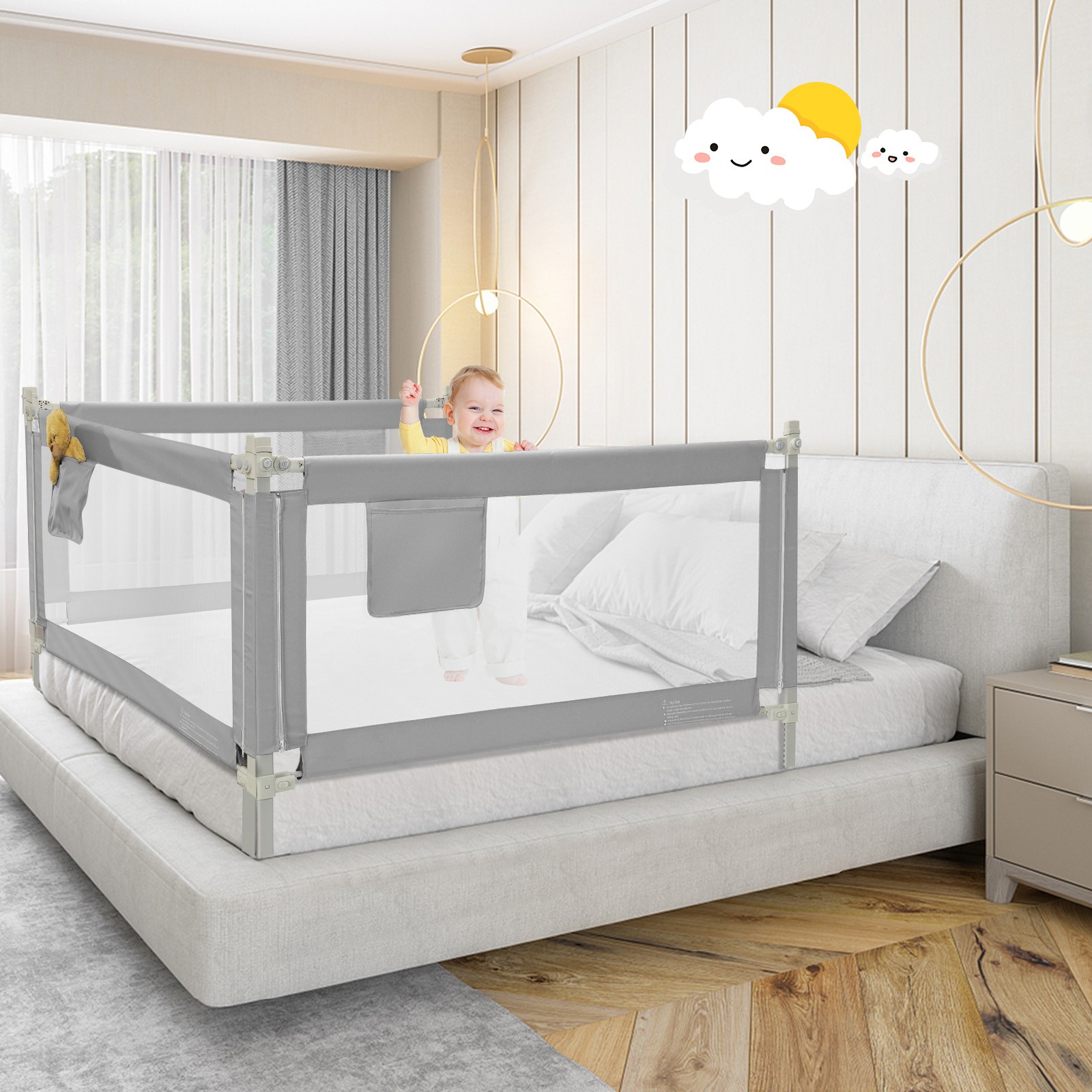 как выглядит 57" Bed Rails for Toddlers Vertical Lifting Baby Bed Rail Guard with Lock Grey фото