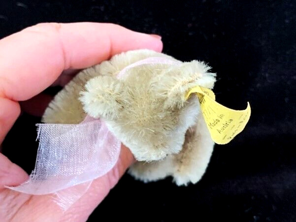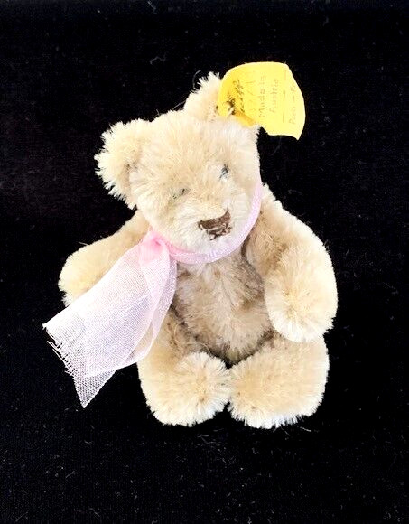 VTG STEIFF Beige Miniature Mohair Teddy Bear 0202/11 Austria 3 Ear Button Tag