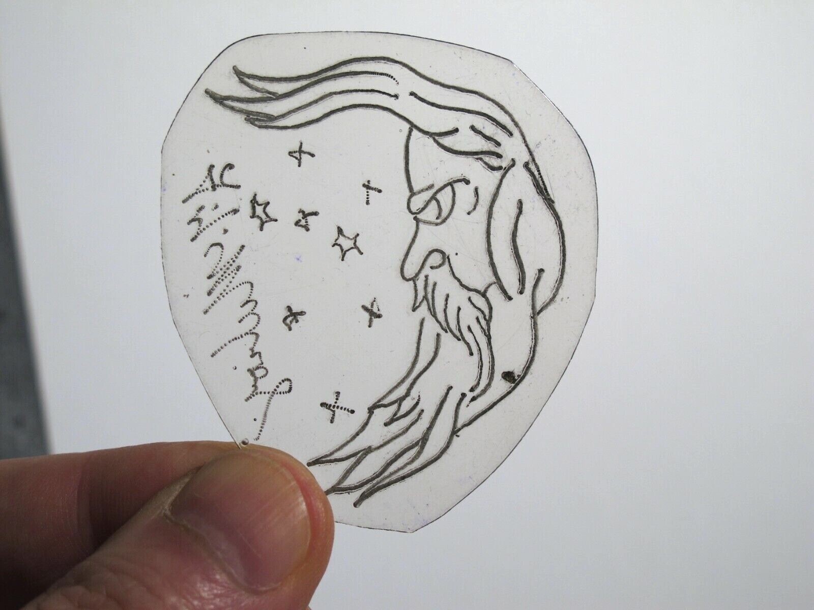 vtg 1960s 1970s Tattoo acetate stencil Old Man Moon signed SKY2