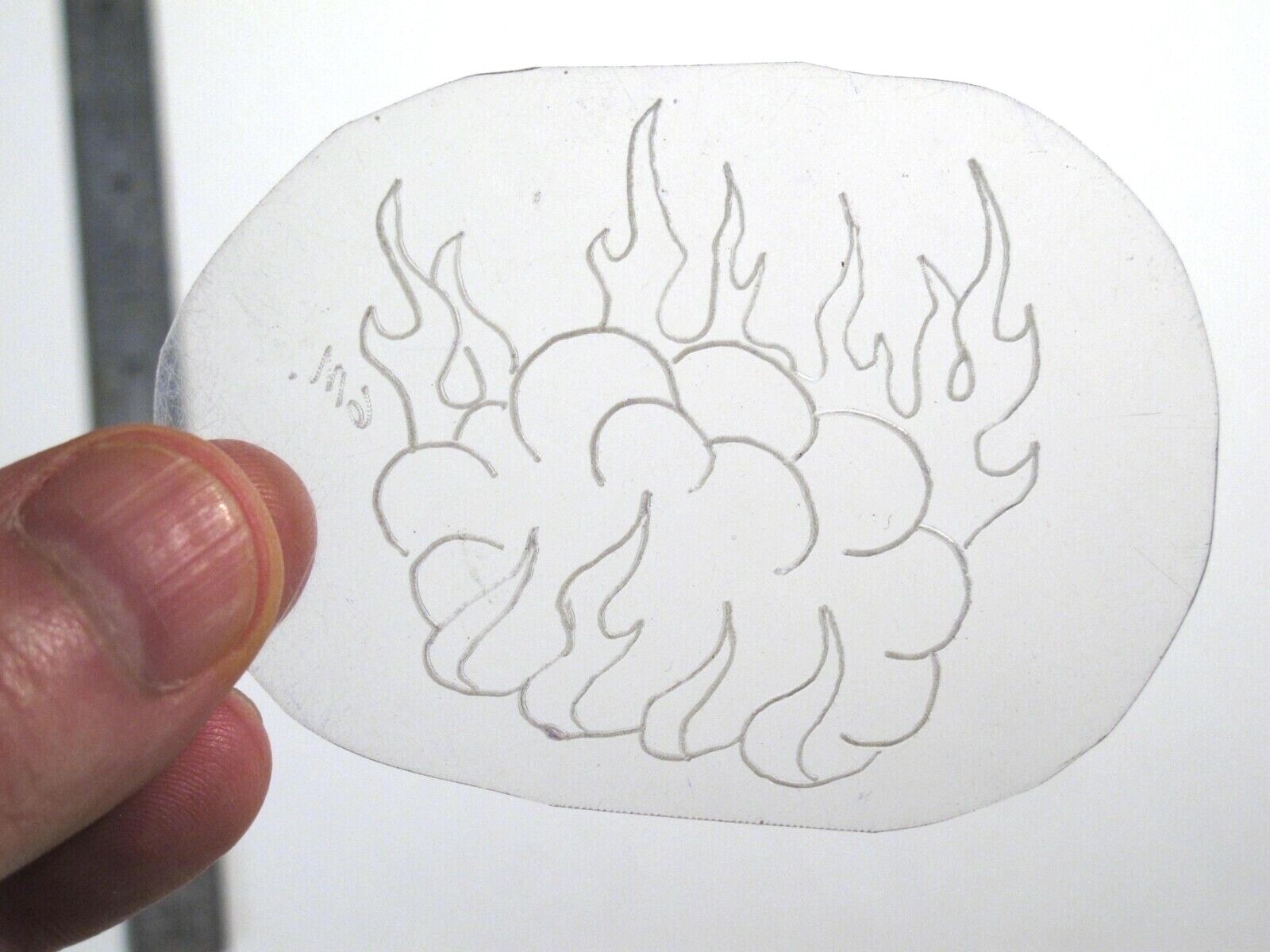 vtg 1960s 1970s Tattoo acetate stencil Flaming Cloud signed SKY2
