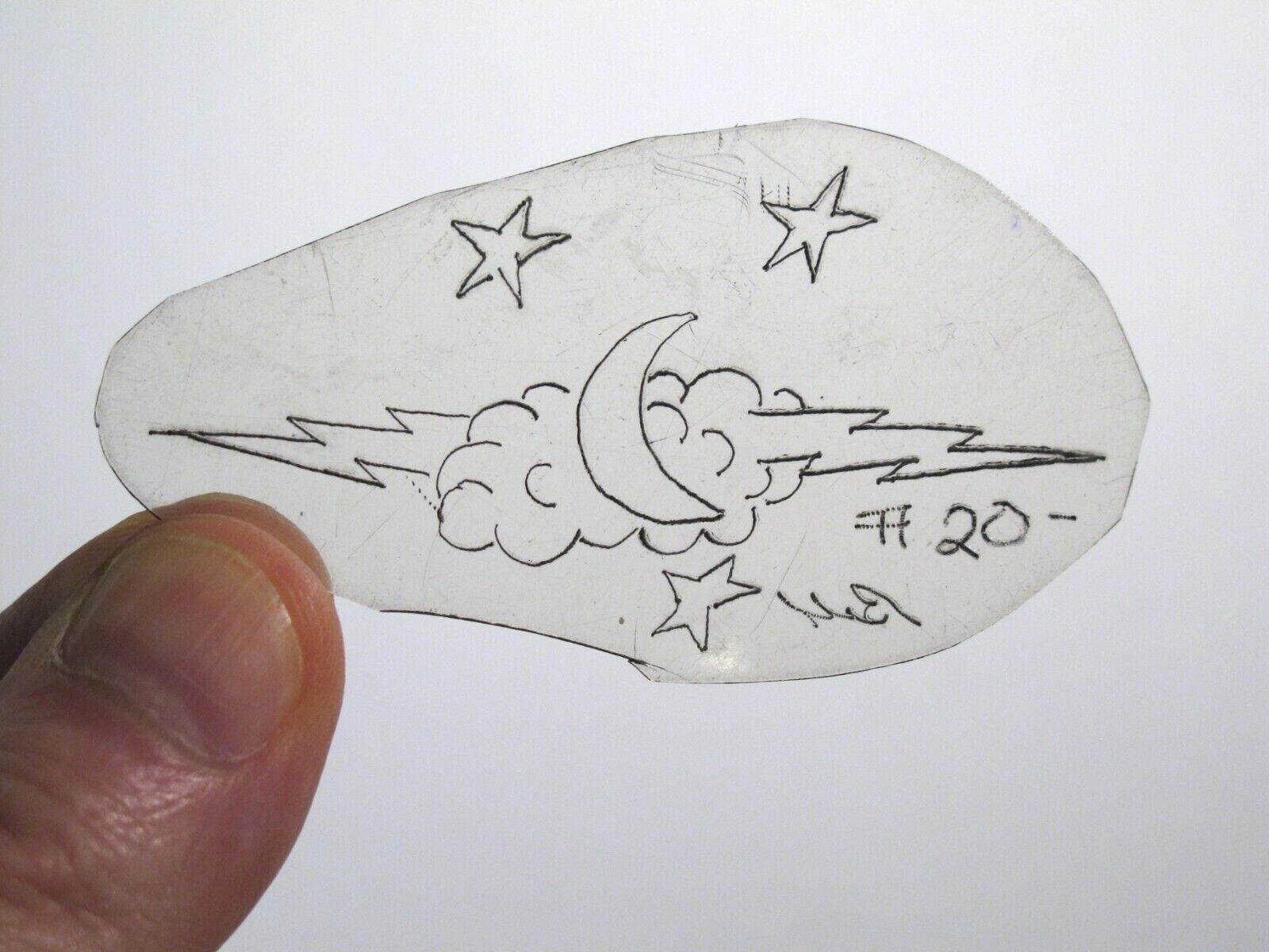 vtg 1960s 1970s Tattoo acetate stencil Moon Cloud and Bolts signed SKY2