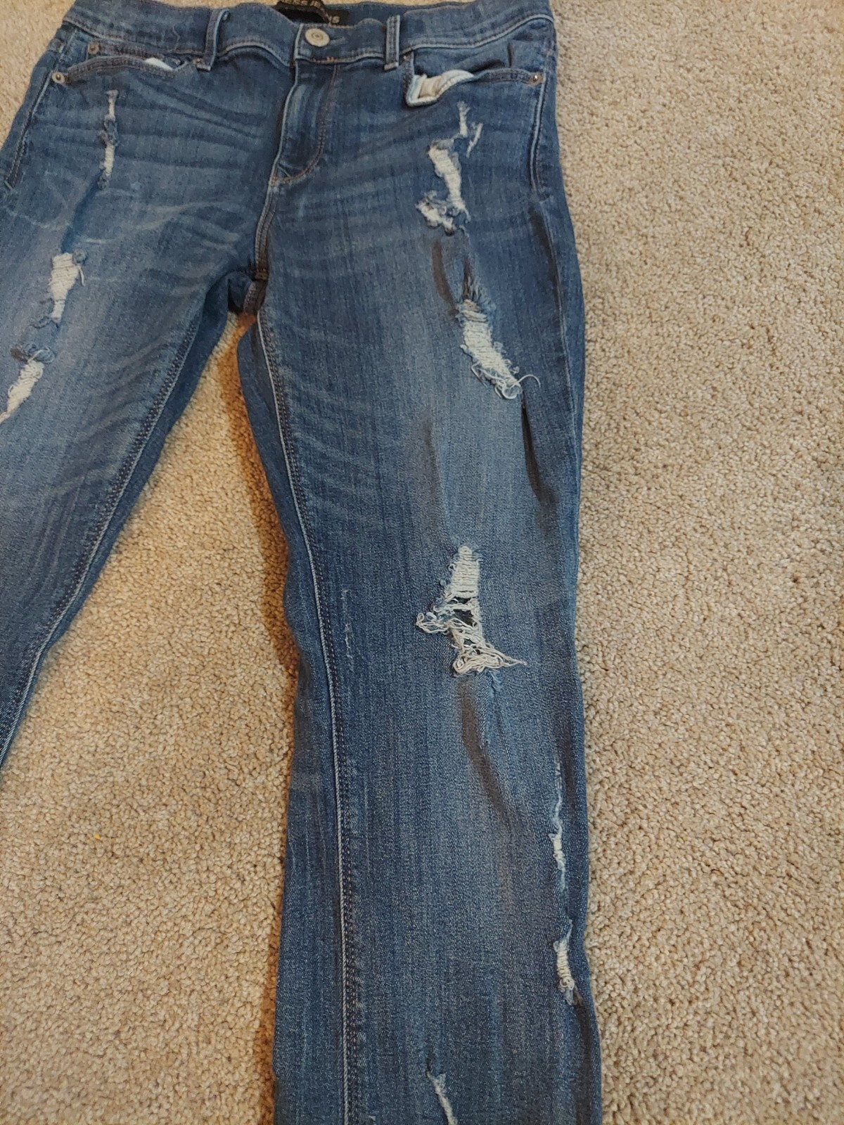 как выглядит Express Super Skinny Mid Rise Stretch Jeans Distressed Wash Denim Size 10L фото