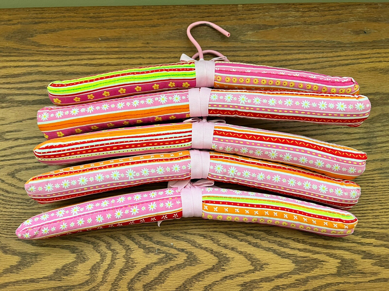 как выглядит VIntage Padded Bright Floral Boudoir Lingerie Clothes Hangers 5 Valentine фото