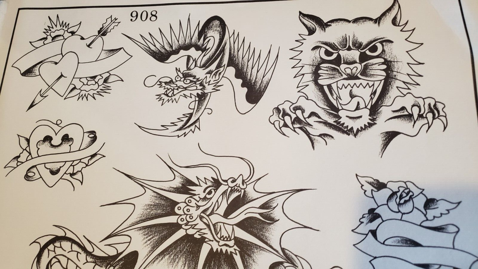 RARE Vintage 1987 Spaulding Rogers Tattoo Flash Sheet Dragon Tiger Heart 908